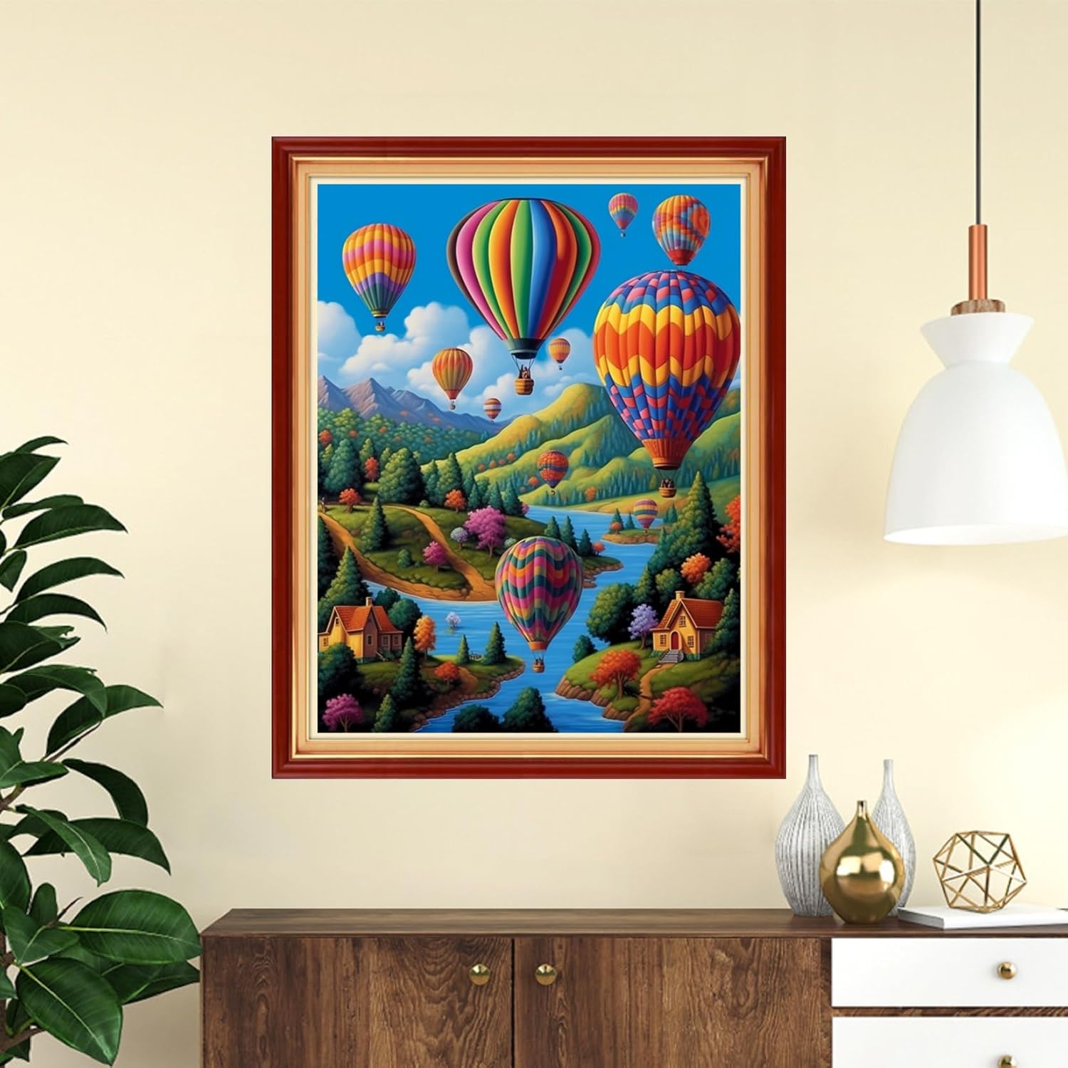 DMCVIVR Stamped Cross Stitch Kits for Adults Beginners Embroidery Kits 11CT Needlepoint Kits Cross Stitch Patterns Embroidery Patterns-Rainbow Hot Air Balloon 16x20 inch