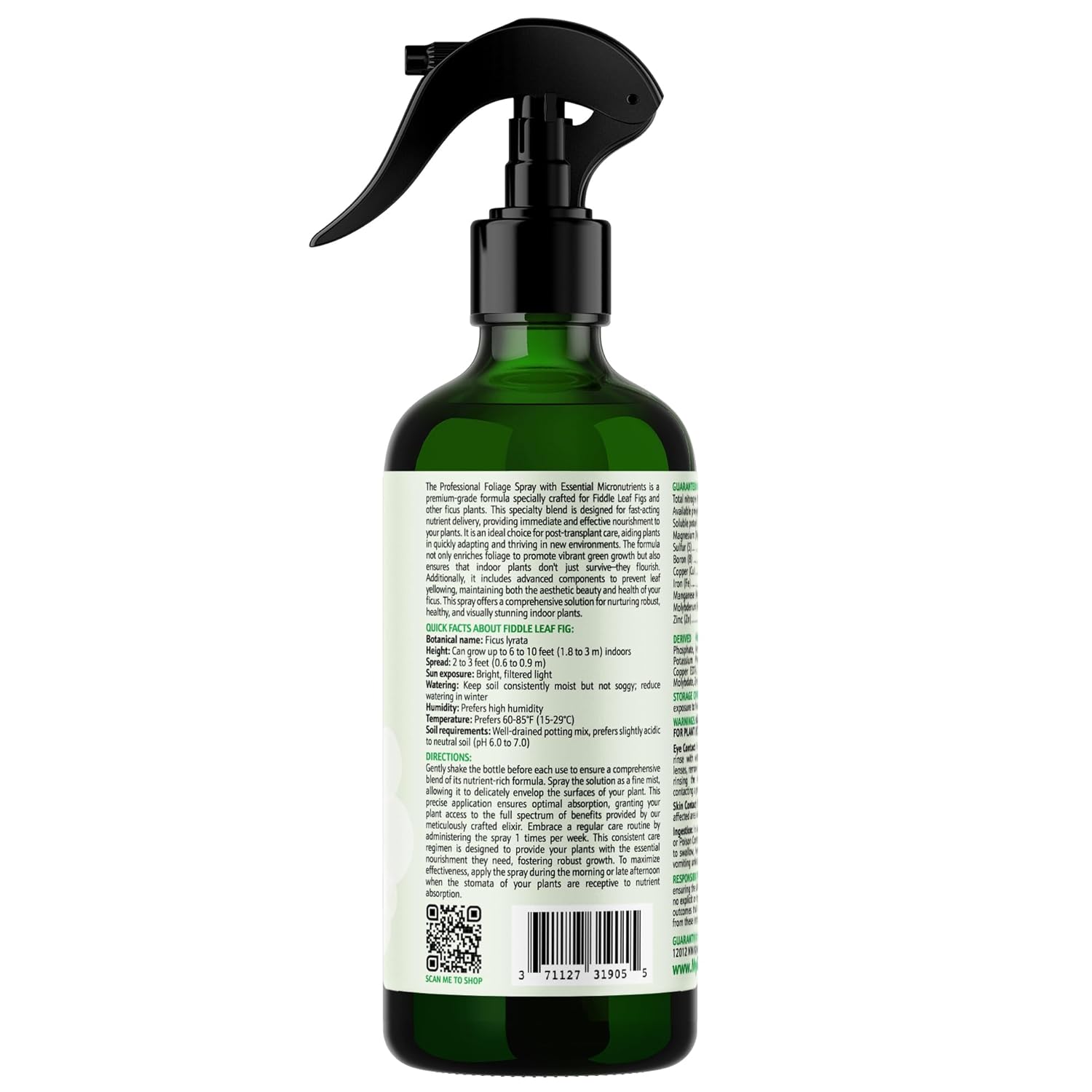 - πΏ READY-TO-USE FIDDLE LEAF FIG FORMULA: Our Fiddle Leaf Fig Spray Fertilizer is expertly crafted for Ficus lyrata, providing a perfect blend of nutrients for its large leaves and growth habits. Conveniently ready to use, simply spray it onto both sides of the leaves for immediate nourishment and care.