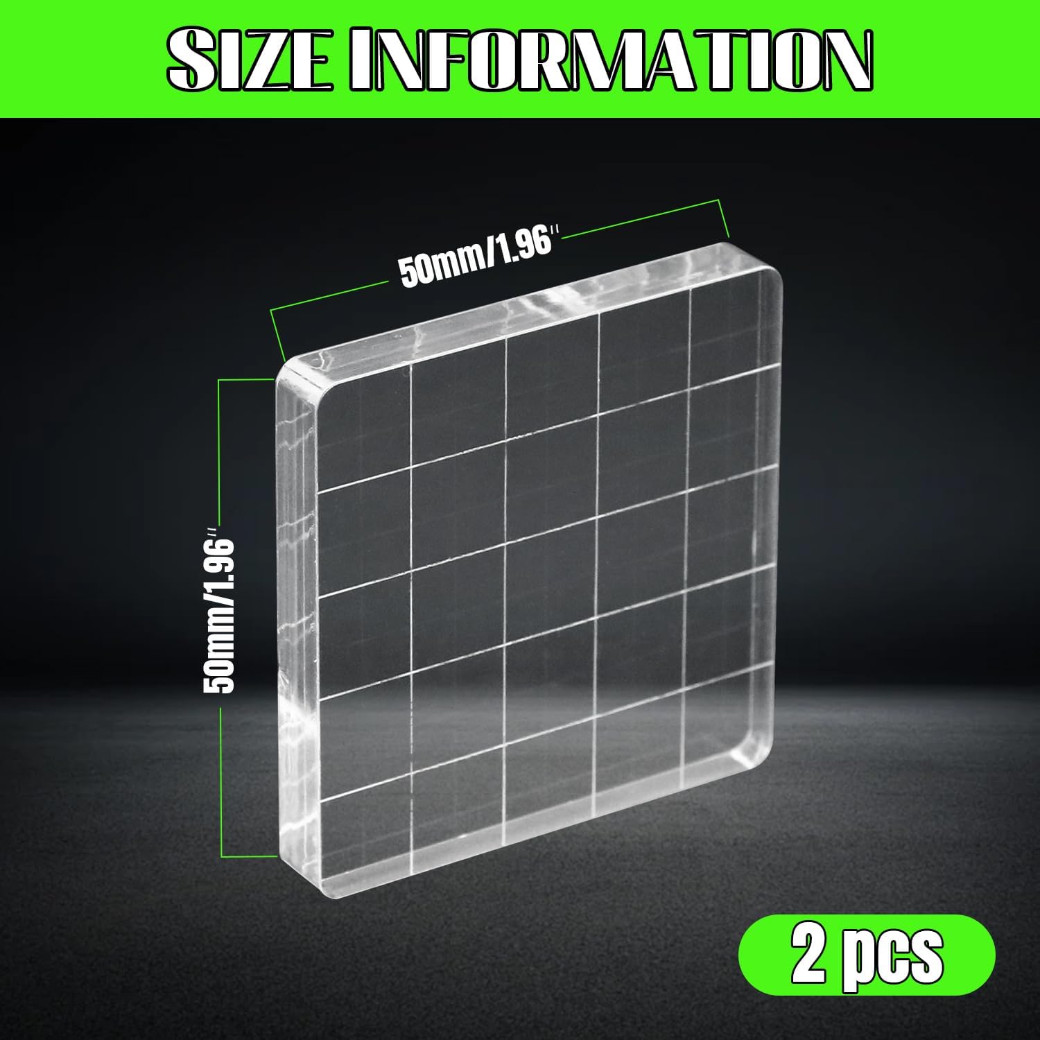 - Package Contents:The thickness is 0.31 inches, 2 x 2 inches acrylic stamp blocks. NOTE: This is a protective cover to protect the stamp block from scratches, please peel off the cover before use.