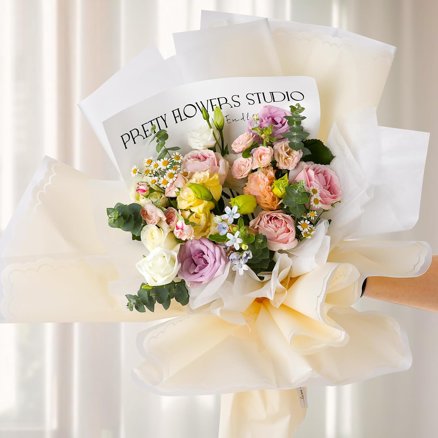 - 【Elegant Design】Semi transparent design, Warm and bright light yellow floral paper, with elegant wavy lines specially designed on the edges, adding a unique charm to the bouquet paper. Smooth and comfortable to touch, Extremely high color comfort makes wrapping paper more noble.