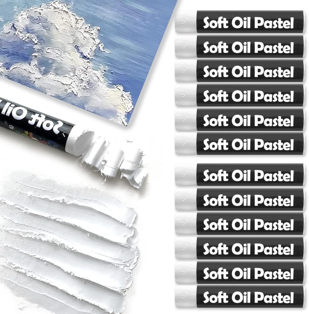 12 Pcs Cream Soft Oil Pastels Vibrant and Creamy Colored Chalk Pastels Artists Grade Art Supplies Set for Professionals Painting Drawing White