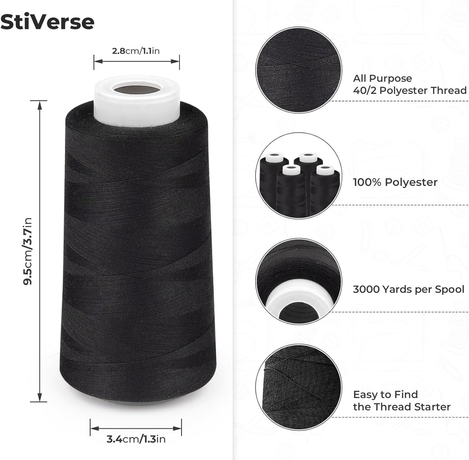 - Black Good Quality & Value Sewing Thread: Serger thread is made of high quality 100% polyester, the black thread is soft and smooth, strong thread, not easy to wear and break, no fading of color, no shrinkage.