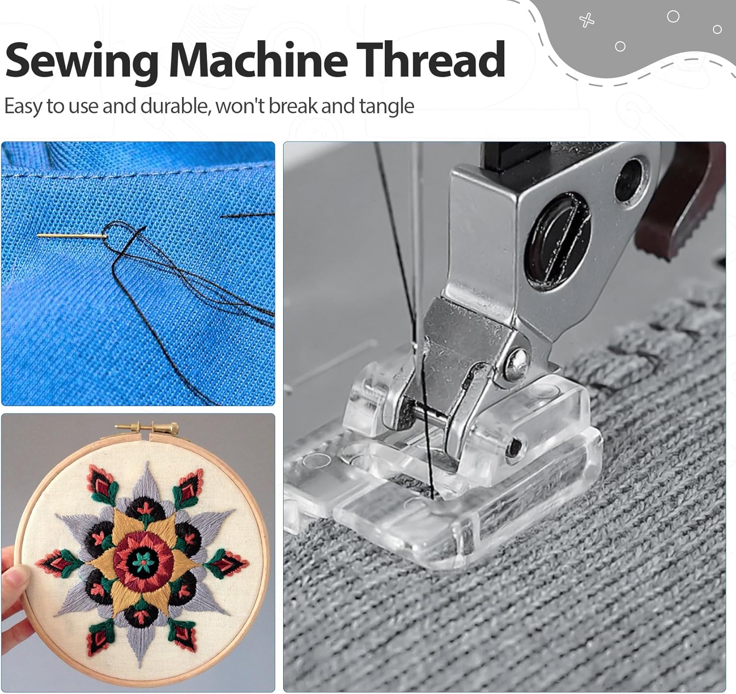 - Compatible with Most Sewing Sergers & Overlock Machines:Our all purpose sewing thread can be used on most brands of sewing machines such as Brother, Babylock, Janome, Singer, etc. It is also used for hand sewing crafts, perfect for sewing friends' practical items.