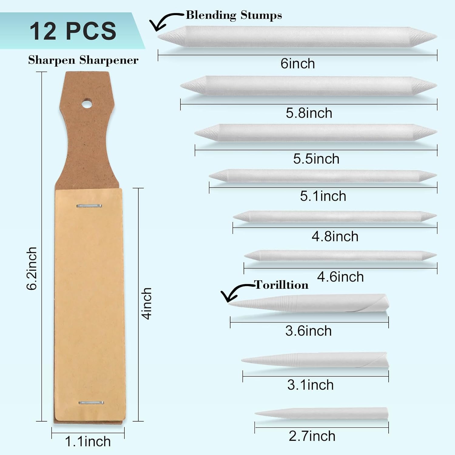- WHAT YOU GET: The Jeimier blending stumps set includes 6 different sizes of drawing blending stumps, 3 different sizes of blending tortillions, and a blending stump sandpaper sharpener, which perfectly cleans the blending stumps