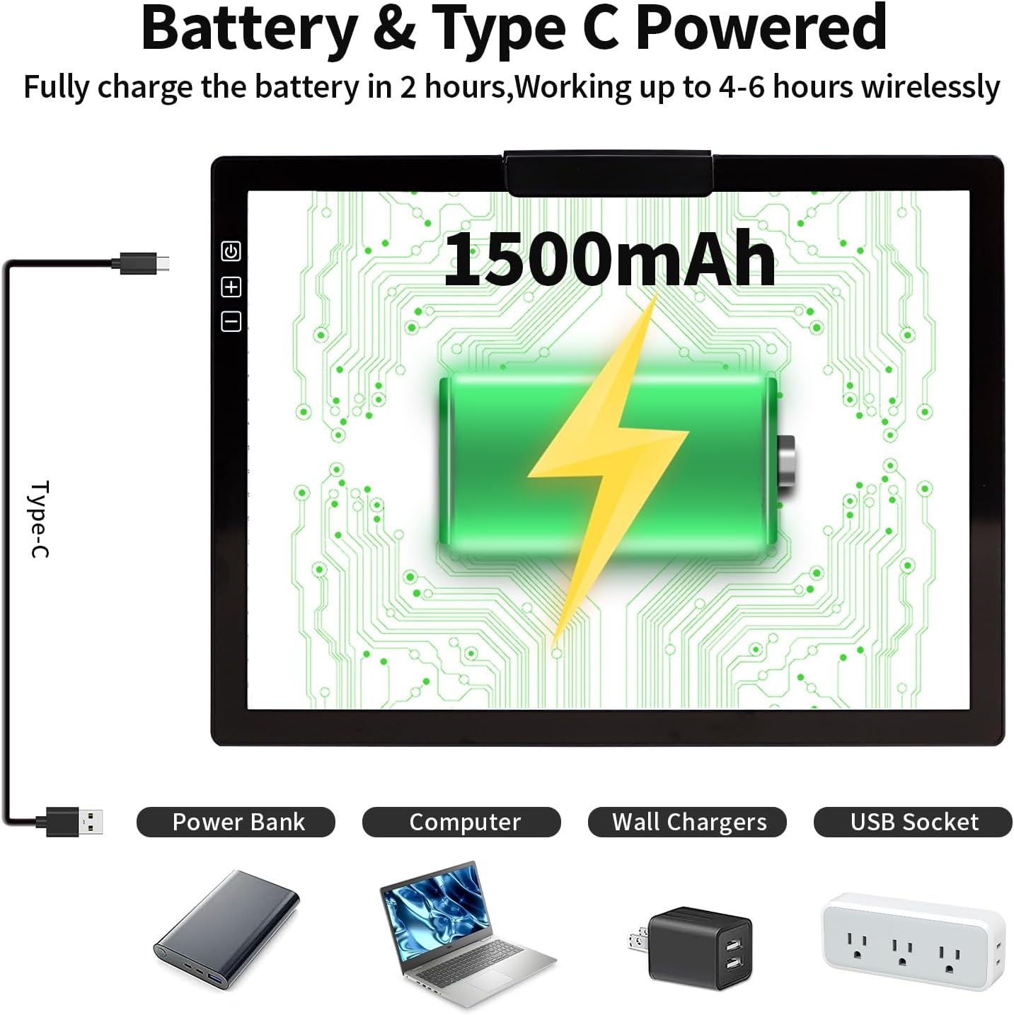 - 【Rechargeable battery & USB Powered with Type-C Port】Zocelight's light box offers wireless tracing for 4-6 hours after just 2 hours of charging(Please use a 5V 2A adapter to charge the tracing light box), making it perfect for on-the-go creativity.ensuring uninterrupted creative inspiration.led light pad offers USB and battery operation for convenient use anywhere. With Type-C charging port and 1.8m cable, it's versatile and portable.
