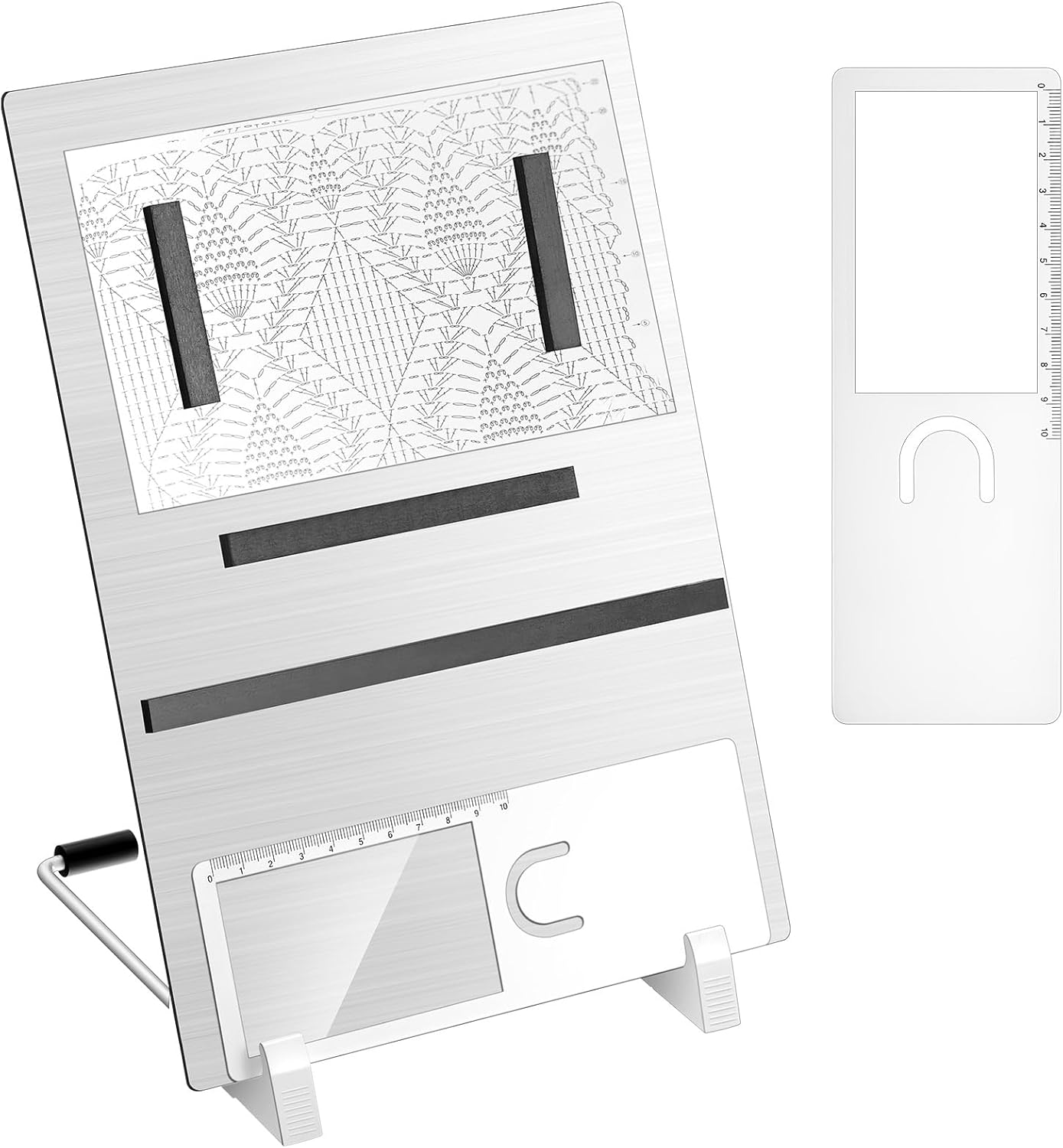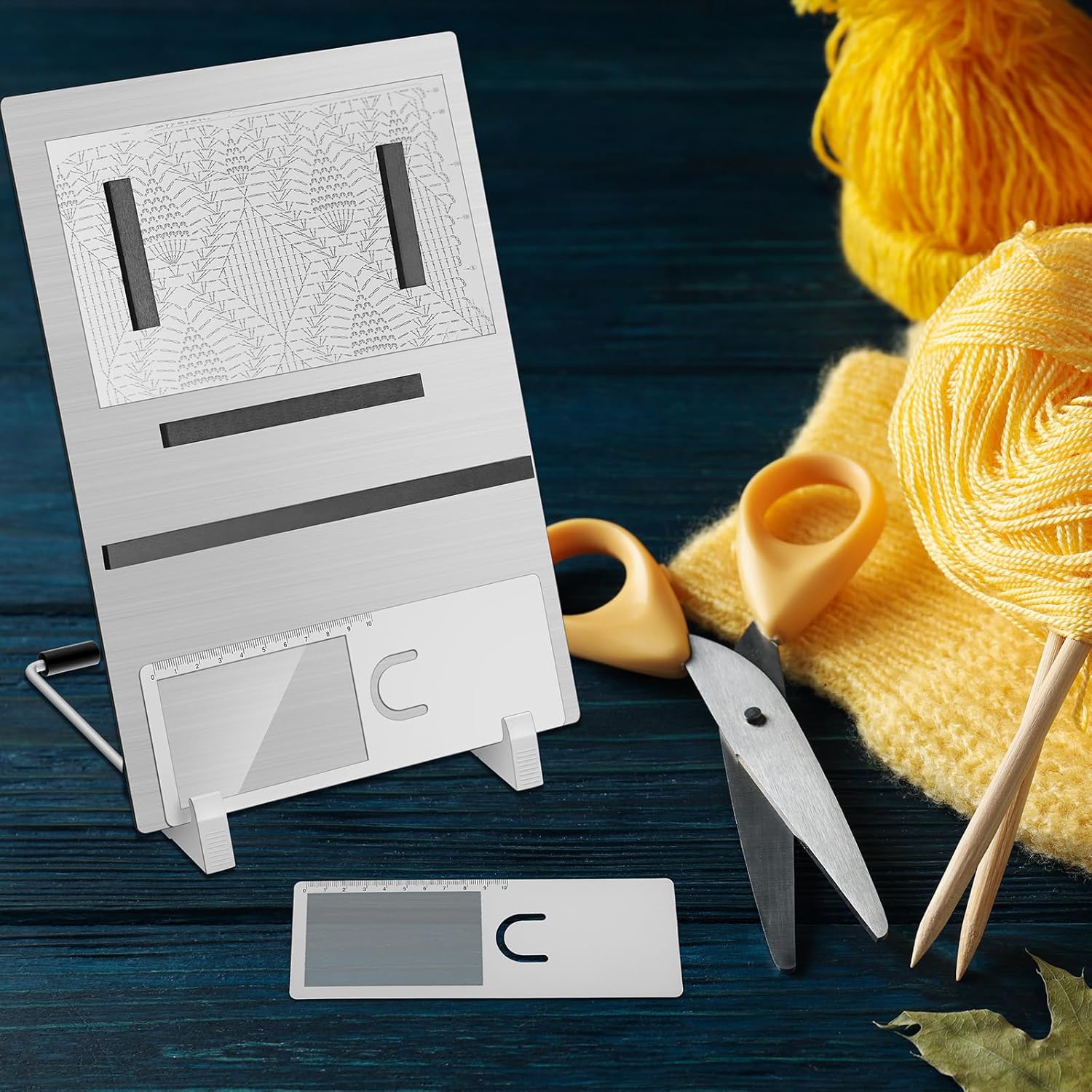- Complete Set: the package includes 1 knitted metal magnet board with a size of 11.5 x 4.7 x 0.01 inch, 4 magnet strips in 3 sizes, 1 white bracket, 2 bookmark magnifiers with ruler, suitable for knitting, crocheting or cross stitching projects