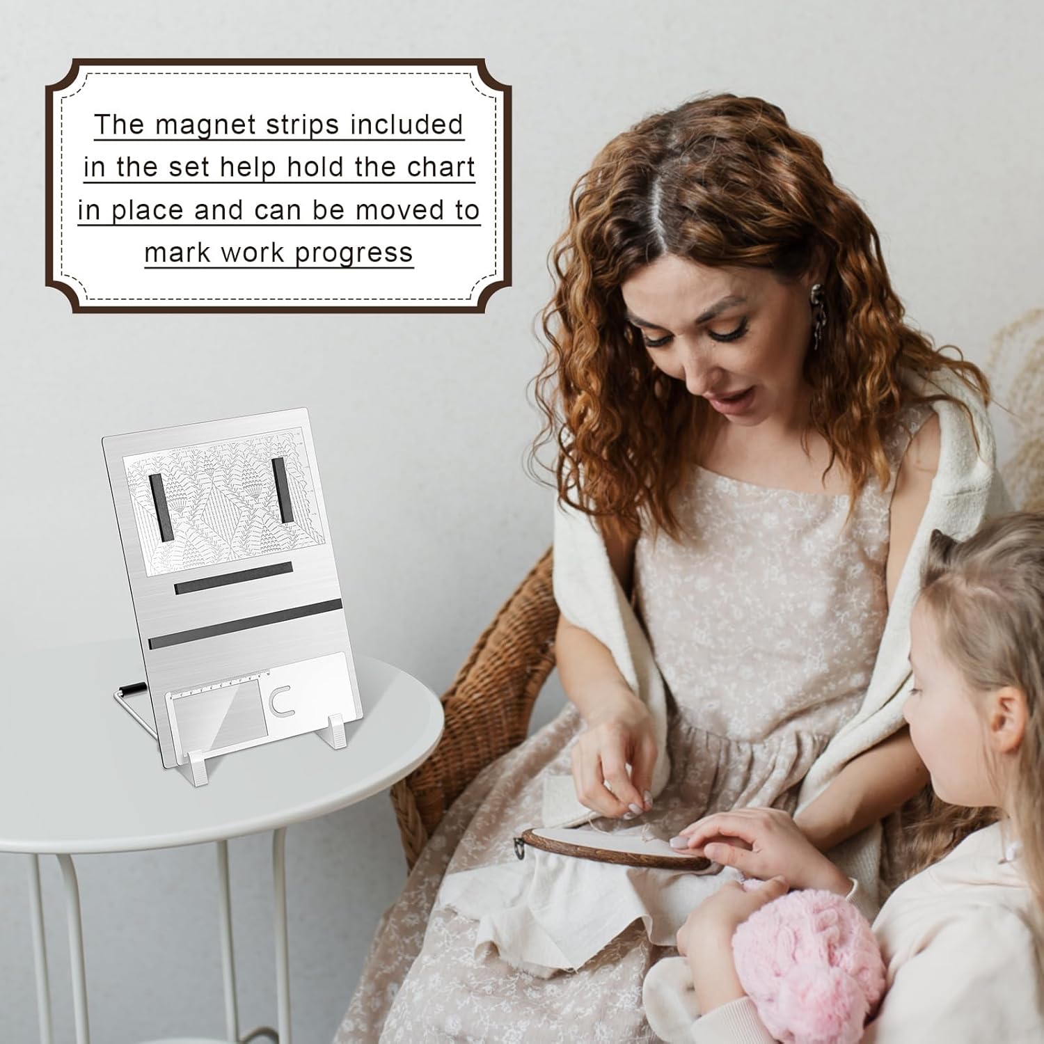 Flutesan 8 Pcs Cross Stitch Accessories and Tools 11.5 x 4.7 Inch Metal Magnet Board Chart Knitting Pattern Holder 2 Bookmark Magnifier with Ruler 1 Bracket 4 Magnet Strips for Crafts Work Supplies