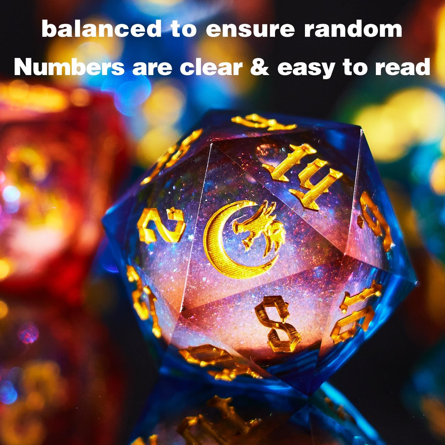 - Liquid Core Dice Set: Each set includes 7 dice, featuring D4, D6, D8, D10, D12, D20, and D%.