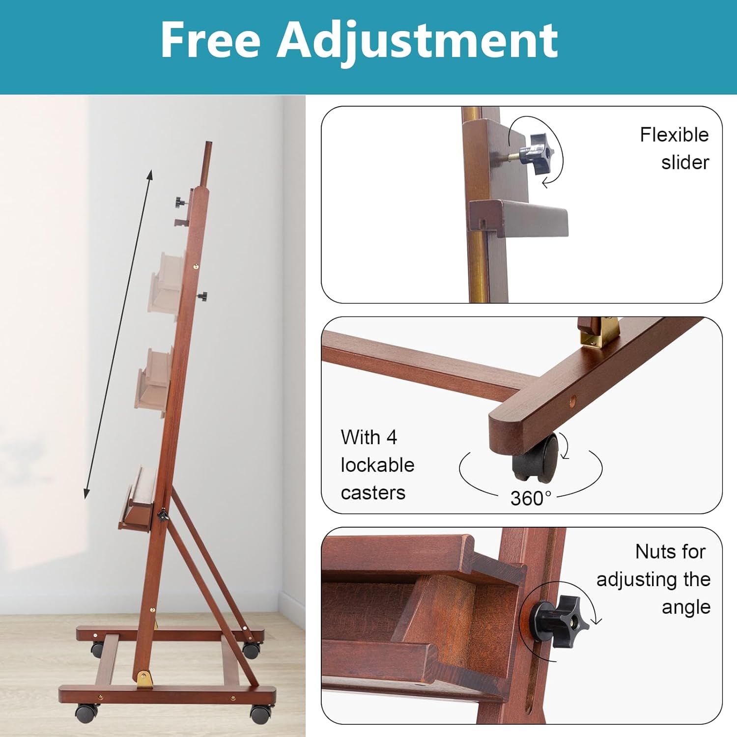 - Effortless Mobility: Effortlessly transport your easel to ensure that you can create art in different environments even out of doors. Four casters are lockable and stable, allowing you to focus on your art or share your works with others.