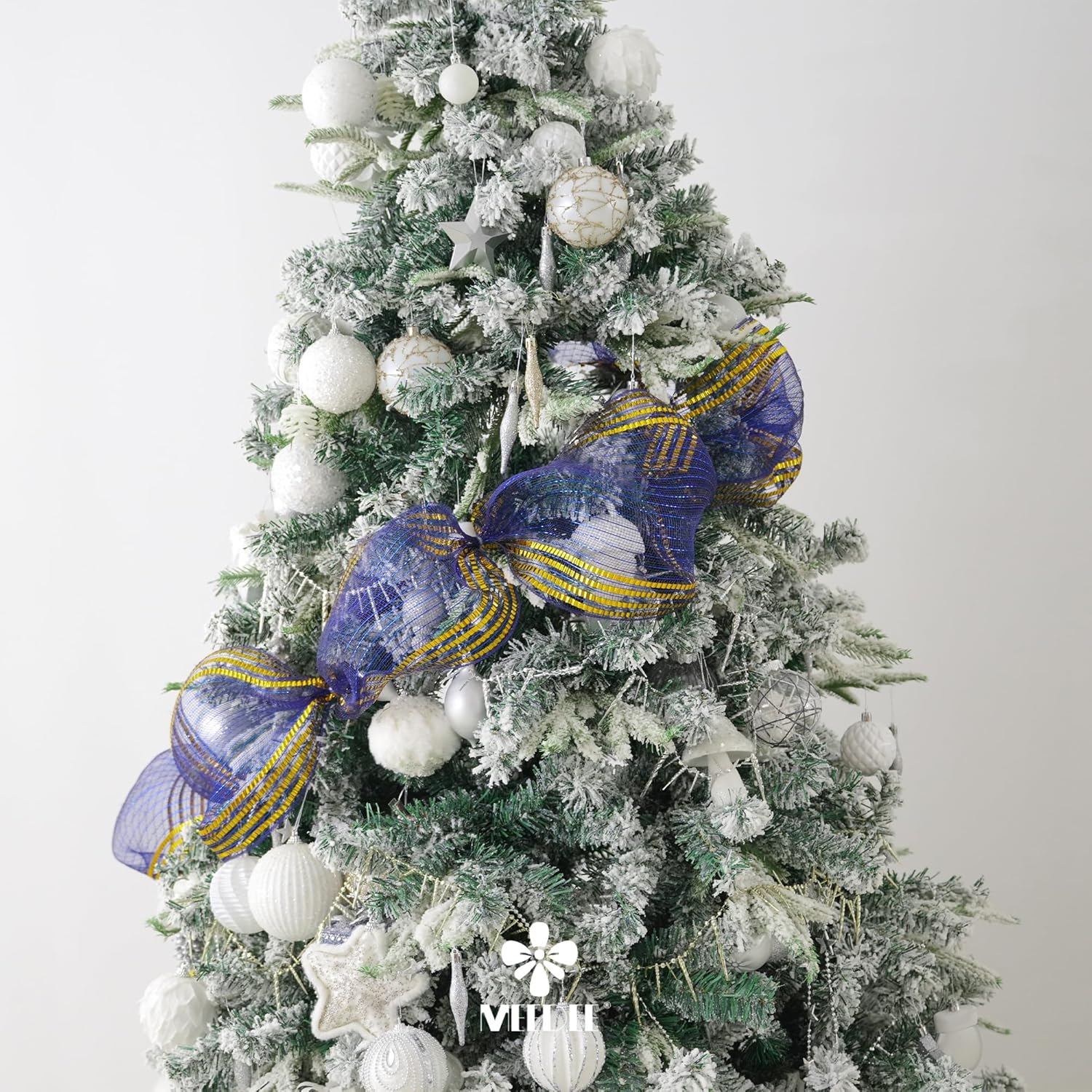 MEEDEE Navy Deco Mesh 10 Inch Deluxe Wide Foil Gold Border Mesh Metallic Mesh Fabric Navy Blue & Gold Mesh Ribbon for Christmas Tree, Wreaths, Garland, Gift Wrapping, Bows Making (30 Feet)