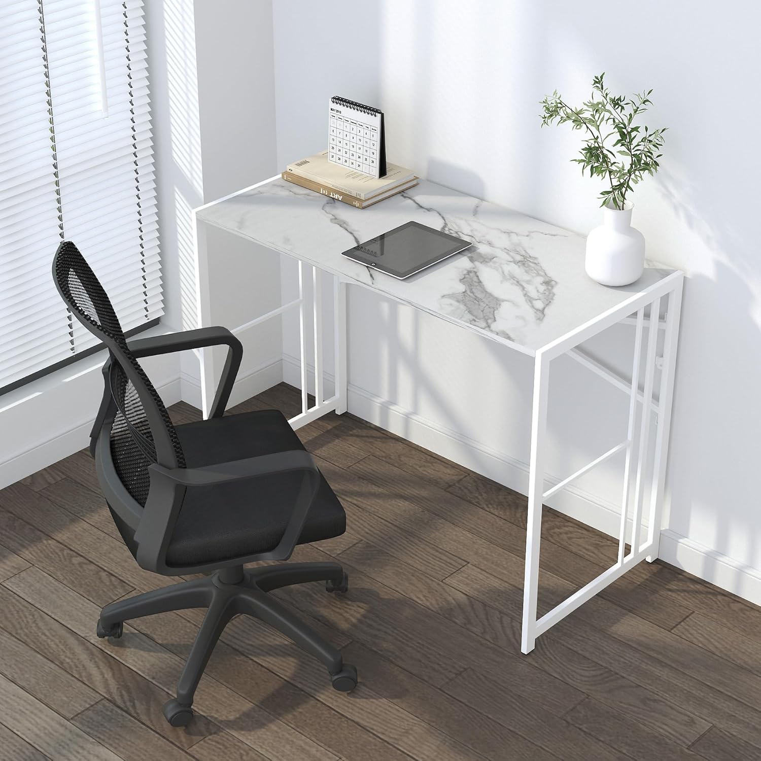 Folding Computer Desk 40 inch Writing Gaming Computer Camping Desk, No Assembly Required Home Office Table, White Marble