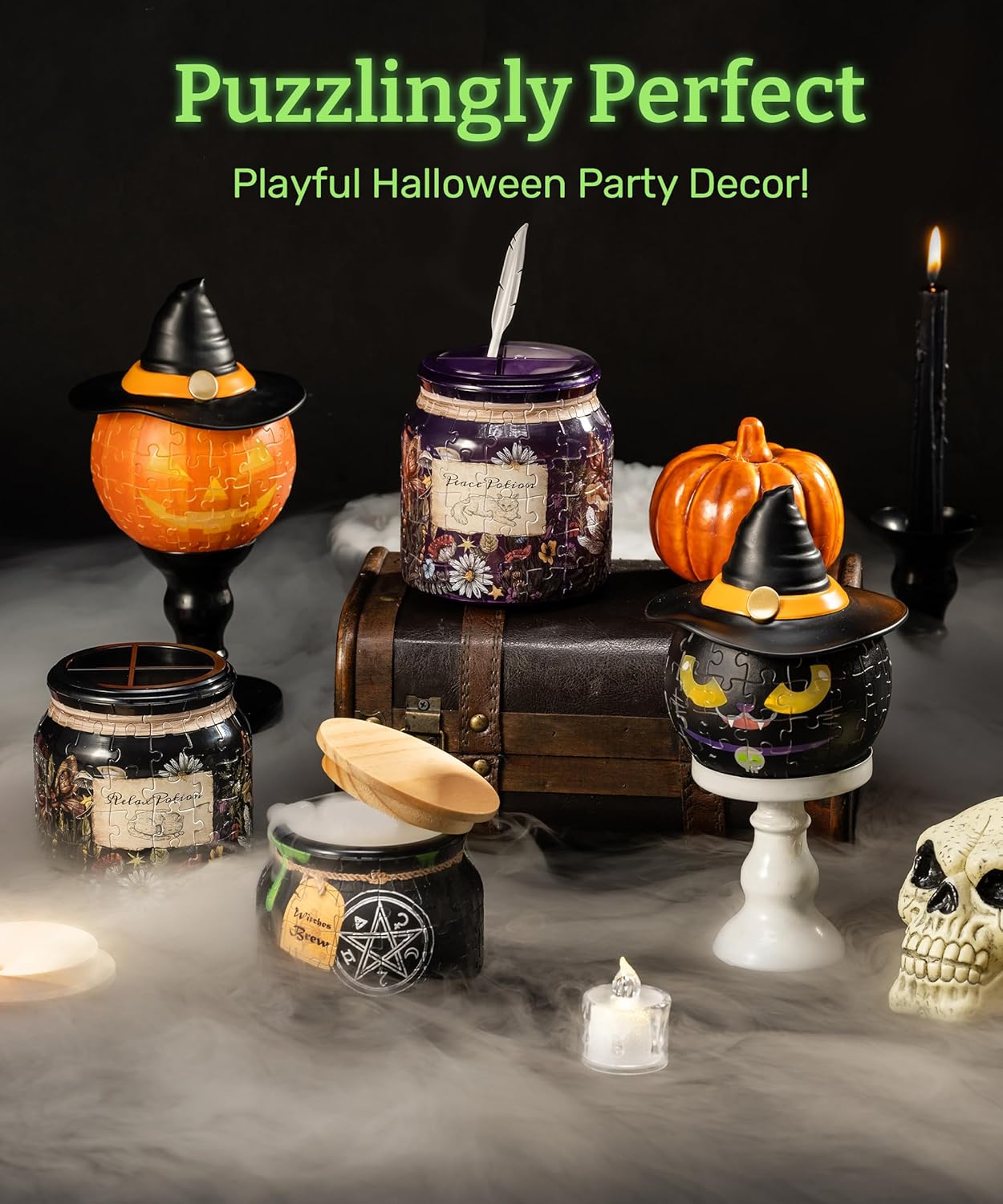 PieceRelax 3D Puzzle Jar 64 Plastic Pieces for Adults - Witches Brew - Wooden Lid Container for Kitchen Dining Study Living Room No Glue Requied Small [BC1022]