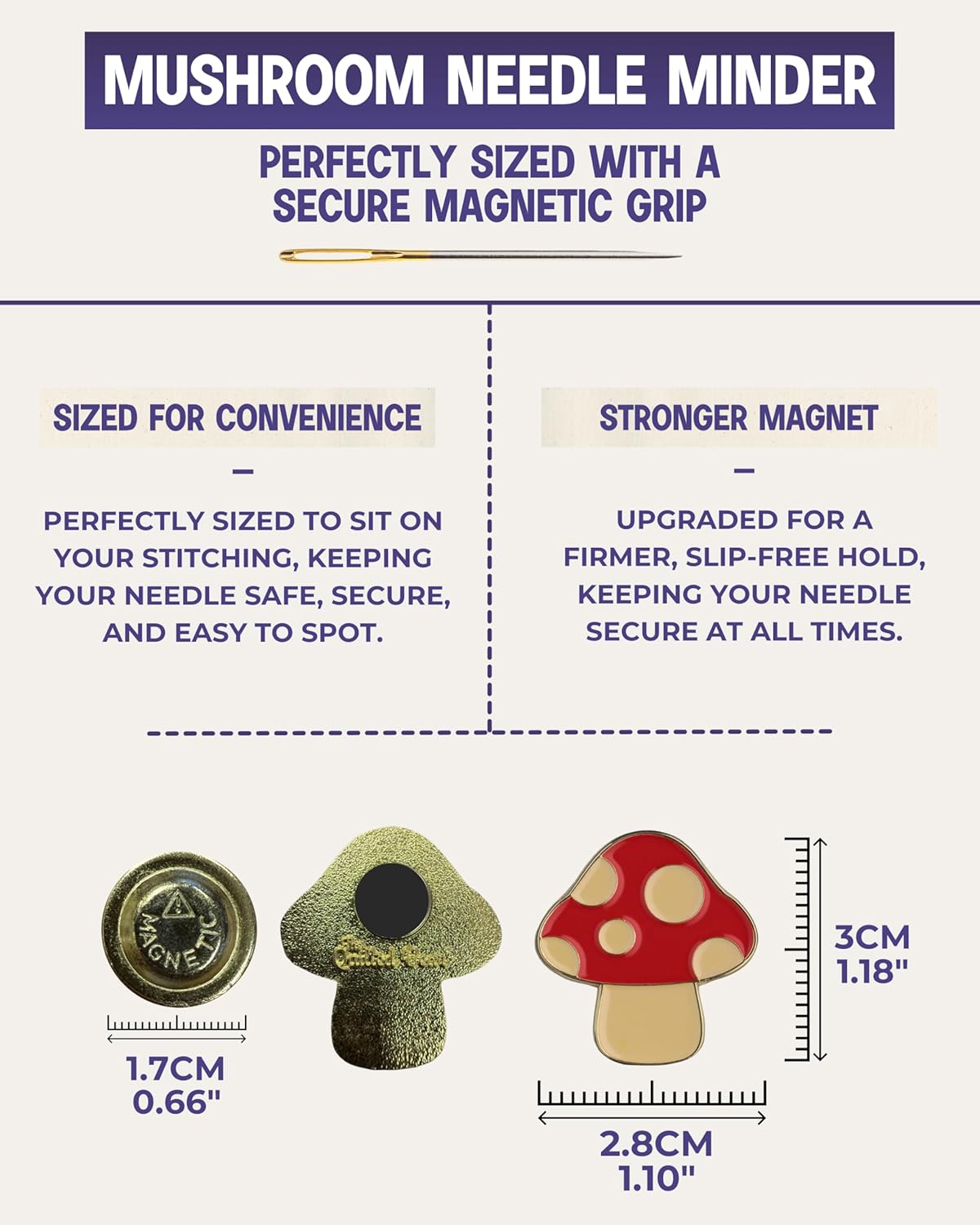 The Quilted Bear Needle Minder - Needle Minder Magnet for Keeping Sewing & Embroidery Needles, Cross Stitch Needles Safe - Stress Free Stitching Cross Stitch Supplies & Embroidery Supplies (Mushroom)