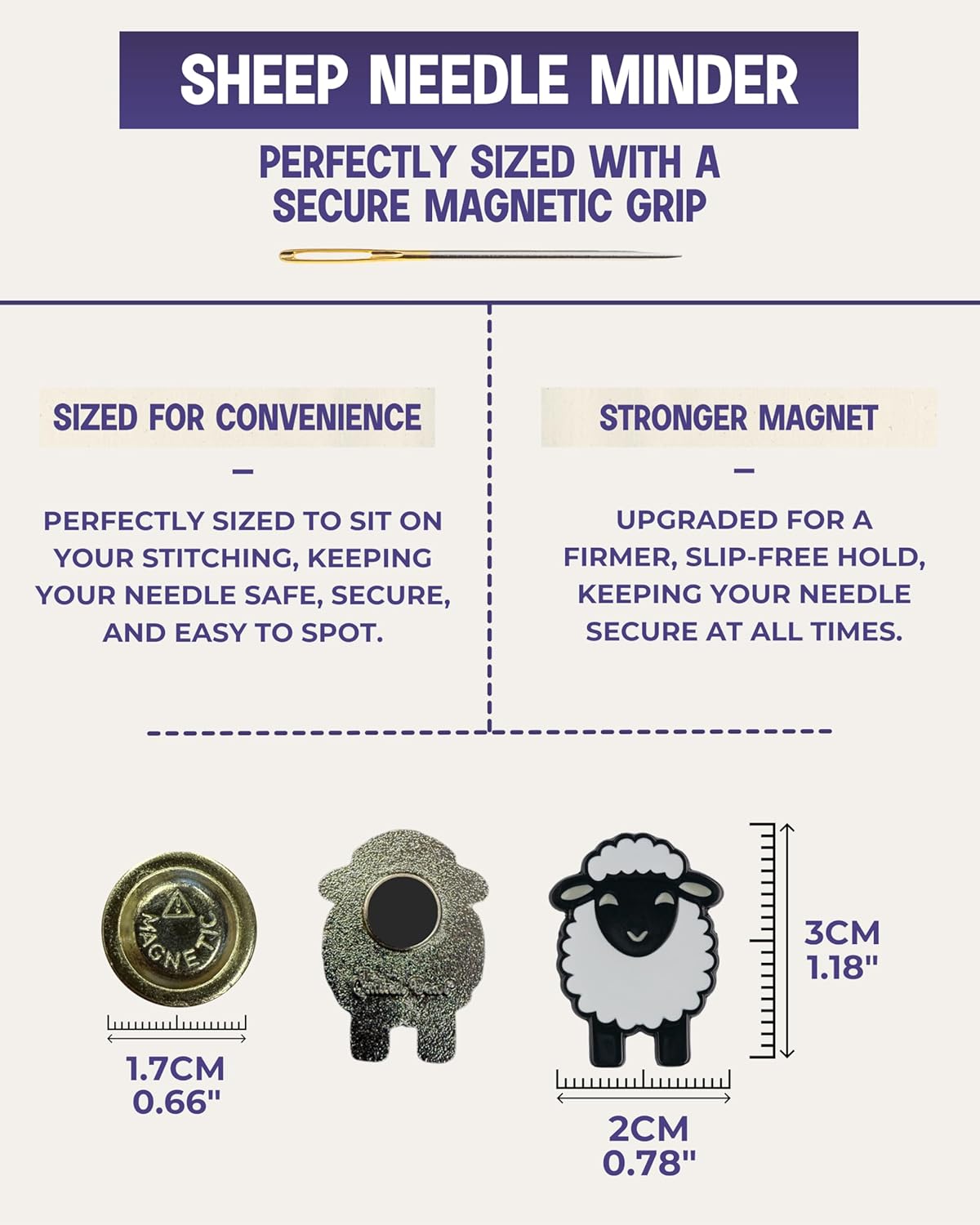The Quilted Bear Needle Minder - Needle Minder Magnet for Keeping Sewing & Embroidery Needles, Cross Stitch Needles Safe - Stress Free Stitching Cross Stitch Supplies & Embroidery Supplies (Sheep)