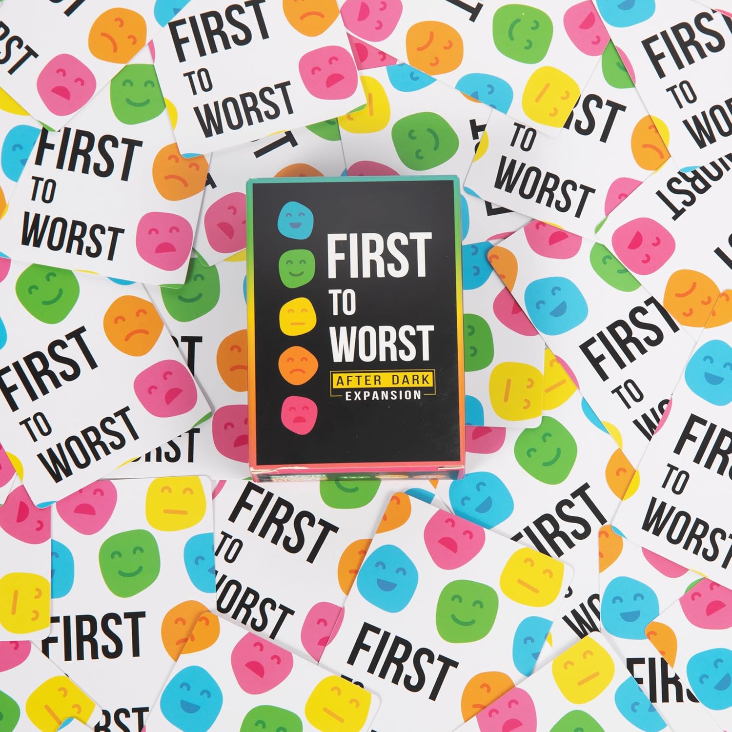 - FIRST TO WORST is the ultimate multi-generational game of polarizing priorities! This SET includes the Base Game plus the After Dark Expansion Pack.