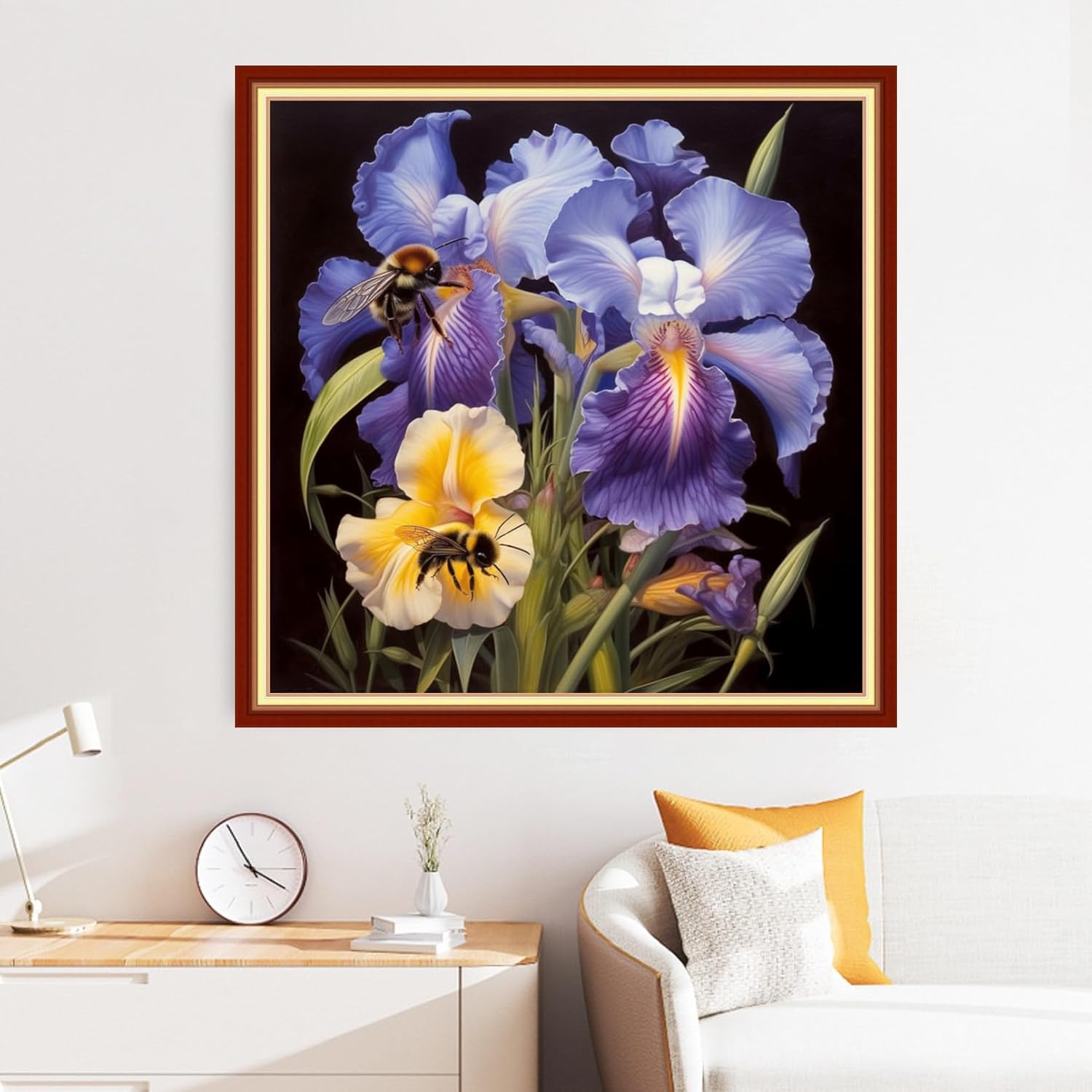 Disxvivy Cross Stitch Stamped Full Embroidery Kits DIY 11CT Cotton Thread Printed DIY Needlepoint Kits Craft Needlework Set Cross-Stitch Stamped Sets-Bees Gather Honey 18x18 inch