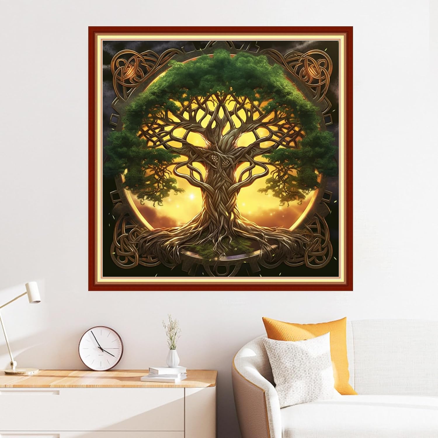 Disxvivy Cross Stitch Stamped Full Embroidery Kits DIY 11CT Cotton Thread Printed DIY Needlepoint Kits Craft Needlework Set Cross-Stitch Stamped Sets-Magic Tree 18x18 inch
