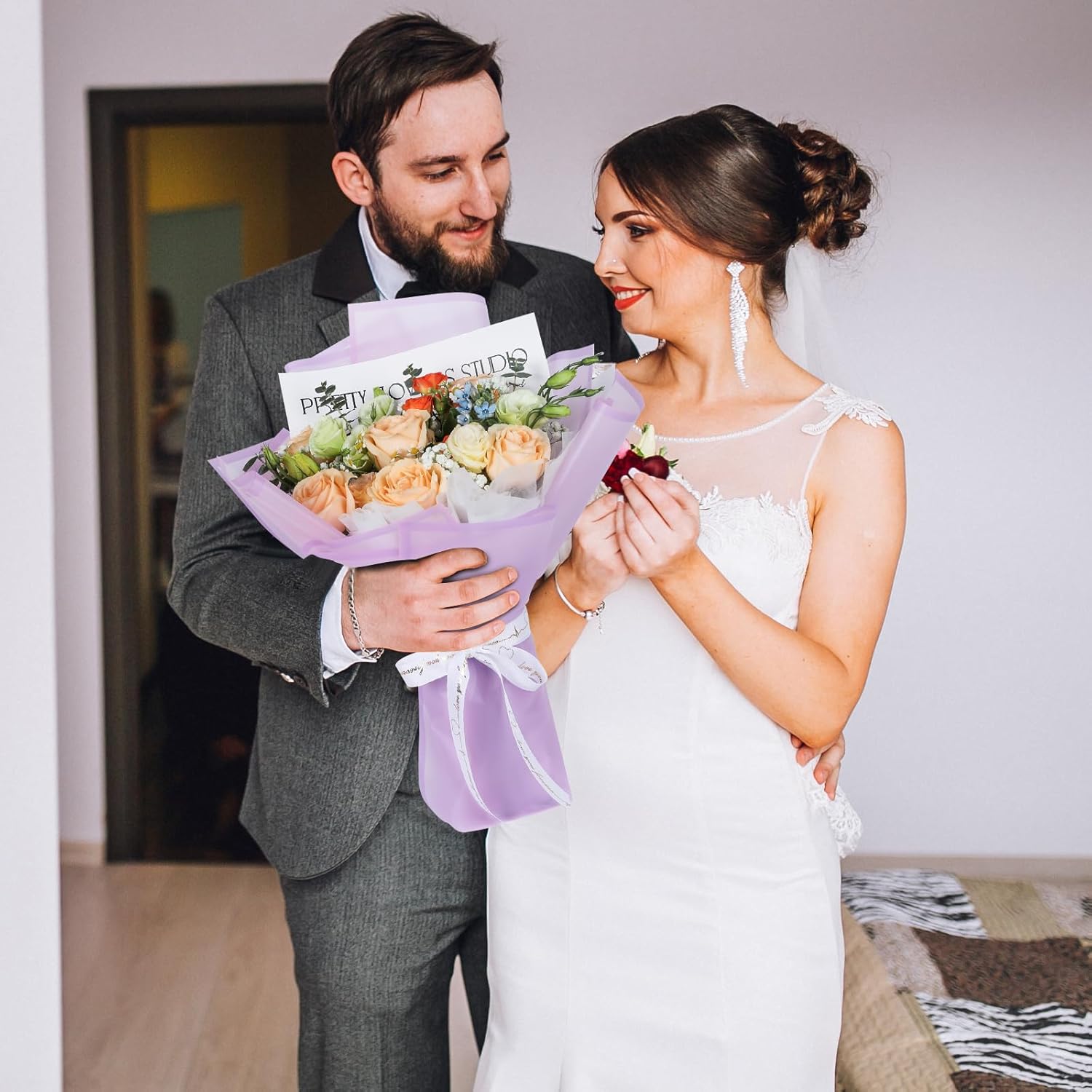 - 【Elegant Design】Florist paper is designed with using classic semi transparent material, the edges are designed in lilac purple color with a frosting, features glossy and vibrant colors, smooth and comfortable to touch. Is the perfect choice for bouquet packaging and gift box packaging.