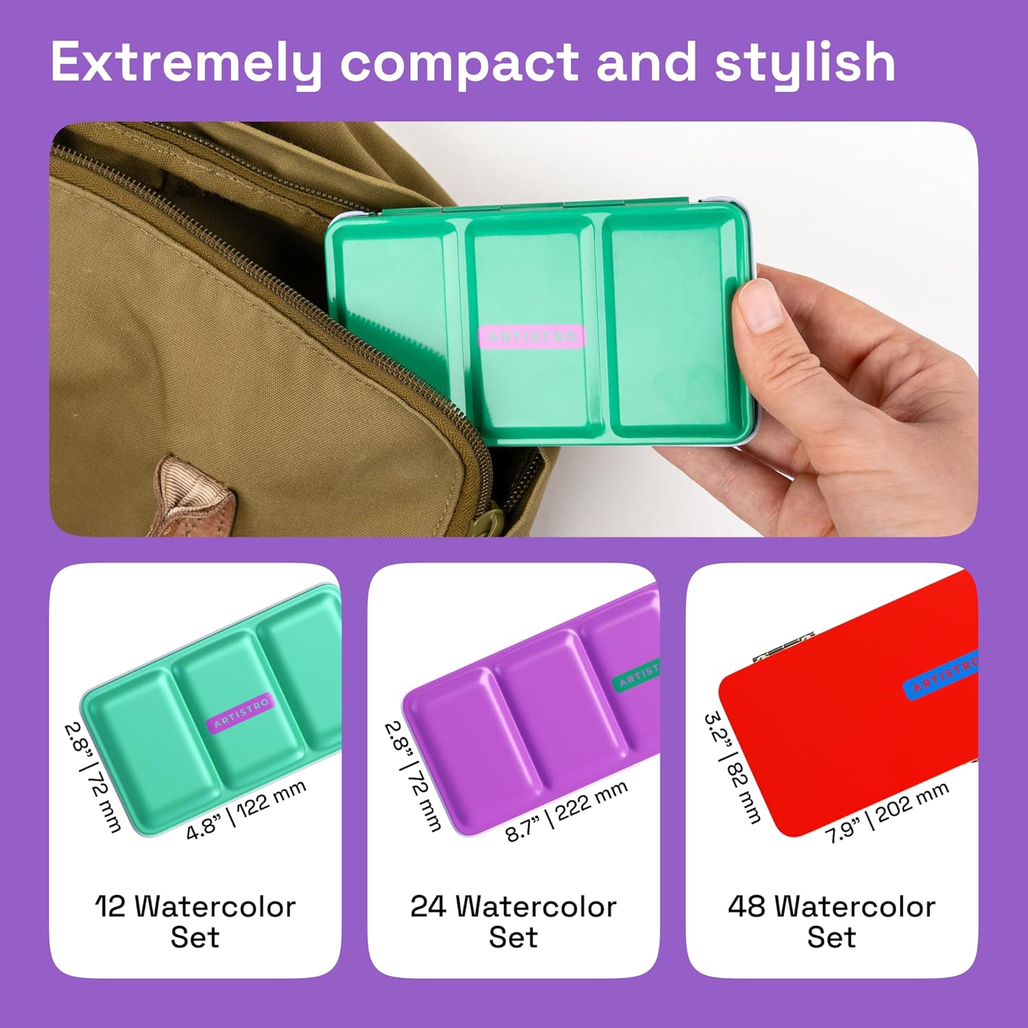 ARTISTRO Watercolor Paint Set in 12 Colors - Travel Watercolor Set with Metal Case & Bright Watercolors - Portable Set for Beginners & Amateur Artists