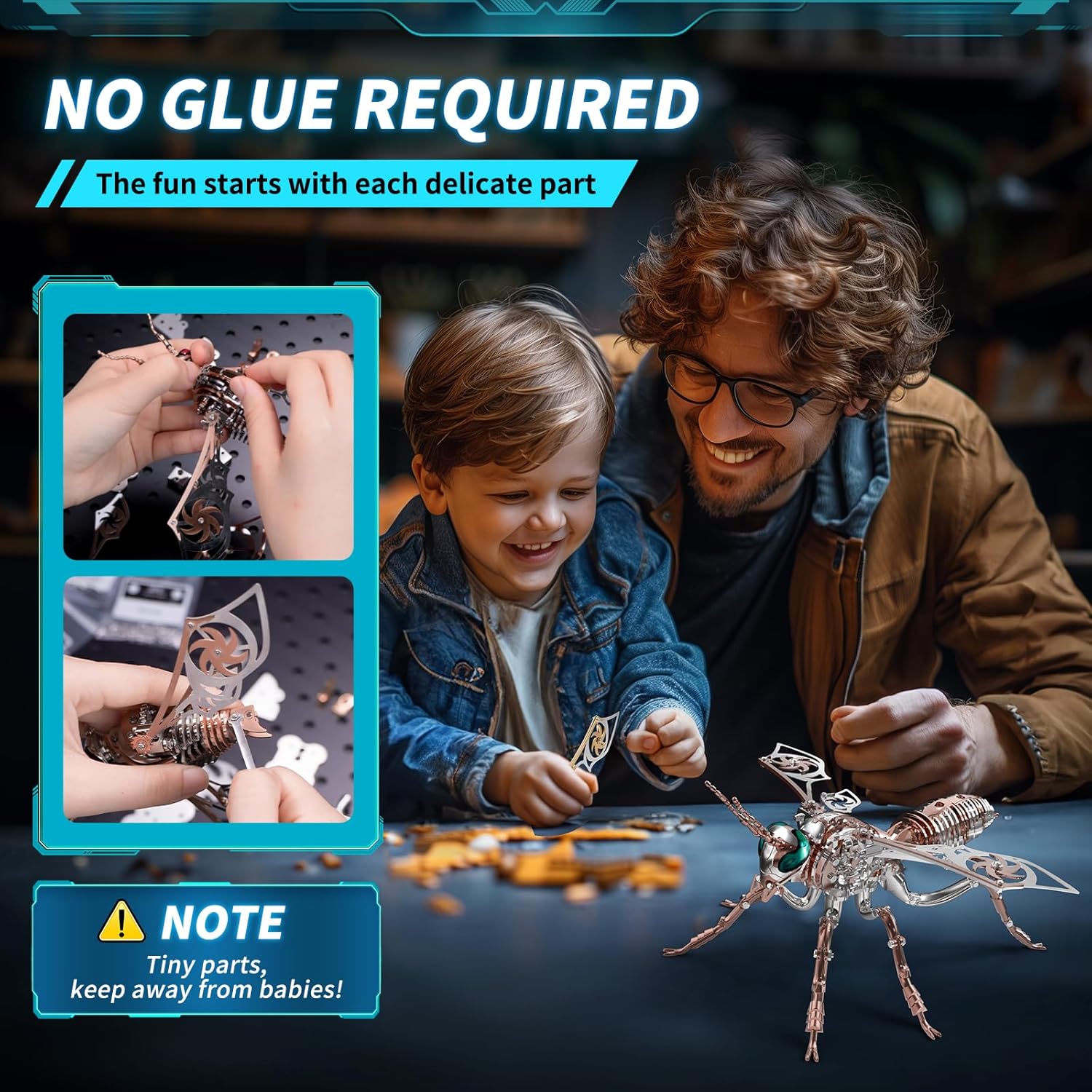 - EXCELLENT DESIGN & TABLE TOYS: 3D Wasp Metal Puzzle is designed with smooth body lines, lightweight wings and lifelike overall shape. In addition to the fun of assembling, you can also use your imagination to freely control its appearance. Metal models have multiple movable joints on its legs, abdomen, wings that allow for various adjustments, enabling you to create different poses, which is very playable. Special color and high-end appearance make him a great desktop decoration for offices, living rooms, bedrooms, cafes and other places.