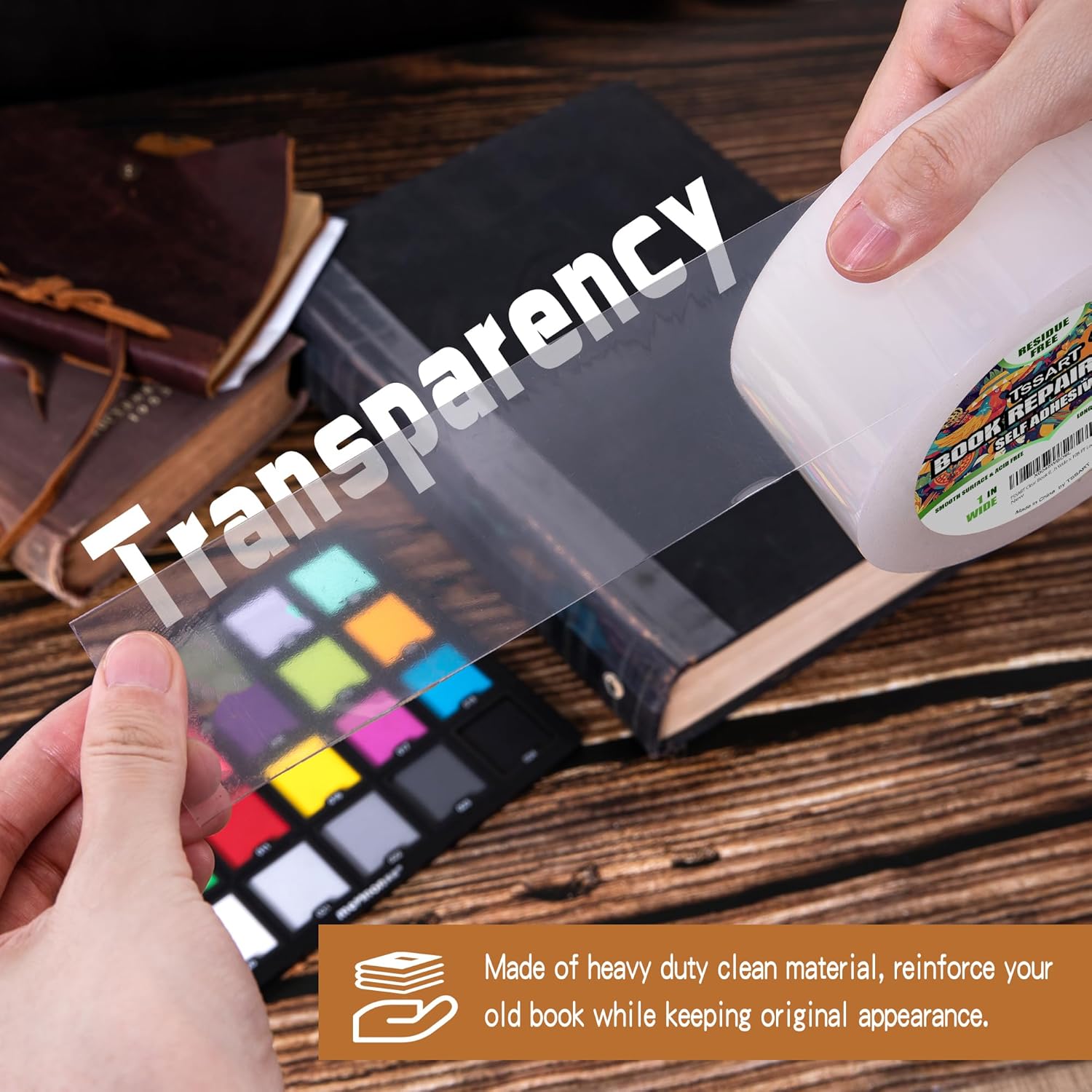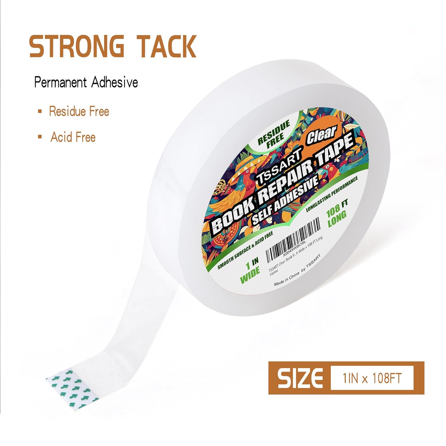 - TSSART Clear Book Repair Tape - Made of flexible material which attached with strong adhesive, help build beautiful line shape of your books, stretchable and can conform to hold the spine exactly where you want it, perfect for various binding and repair needs and an essential item for librarians.