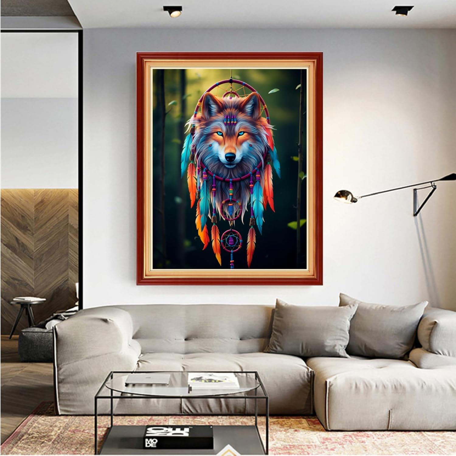 Dooxvey Cross Stitch Kit for Adult Beginners - Full Range of Stamped Kits, 11CT Cross Stitch Patterns - Wolf Wind Chime 16x20 inch