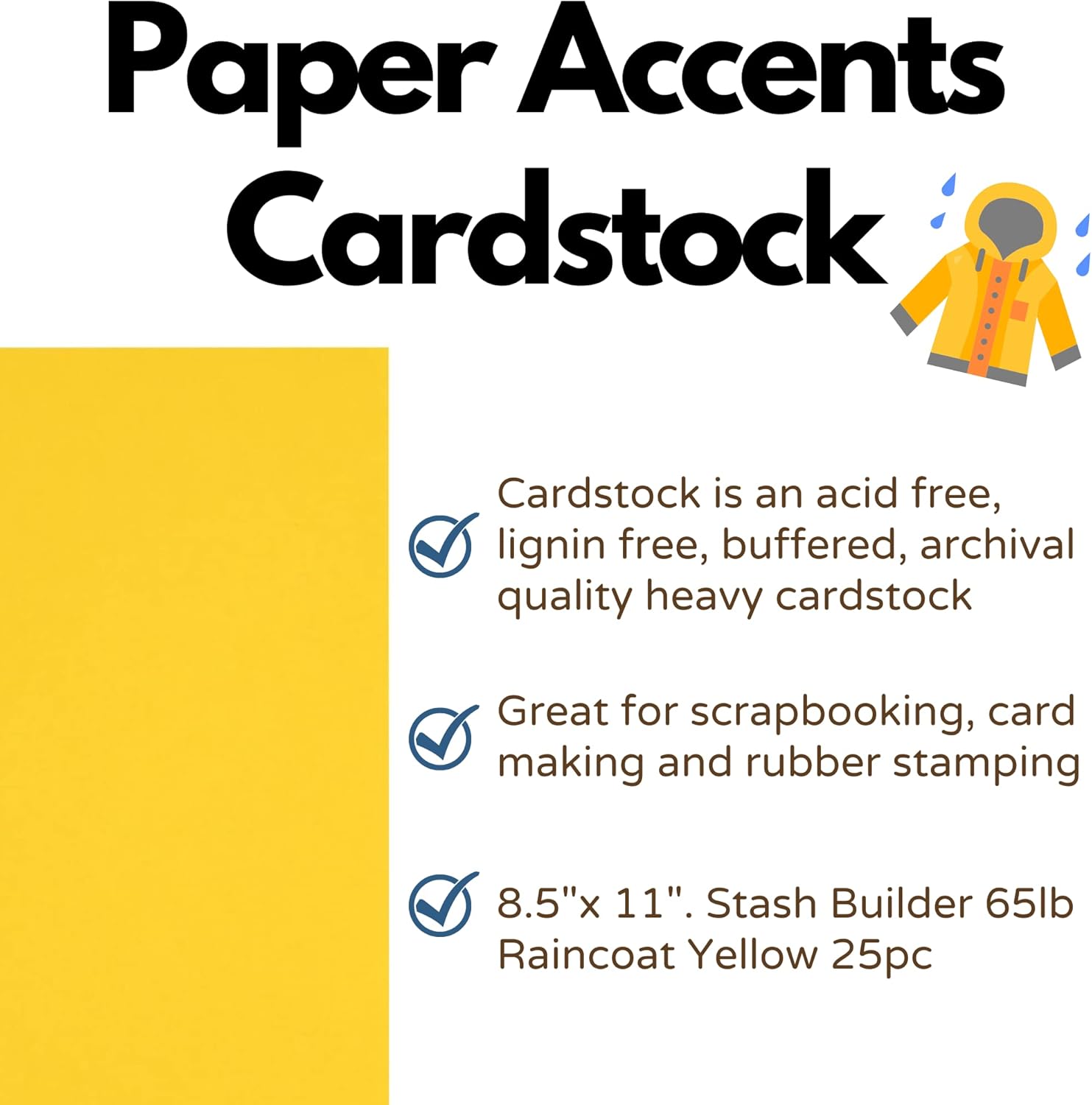 - Paper Accents stash pack cardstock in 8.5x11 in the color Yellow Raincoat. This cardstock paper is handy for scrapbooking, DIY greeting cards, decoupage projects, and paper crafting. Each 8.5οΏ½ x 11οΏ½ paper sheet is ideal background paper for scrapbook albums.