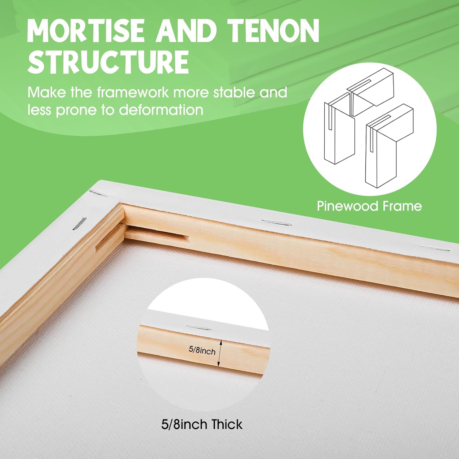 - Wood Frame:The 16x20 canvas for painting is nailed firmly to the pinewood frame, extra cross bar to ensure the perfect steadiness, 5/8 inch thick frame structure,It's sturdy and doesn't deform easily. The high quality will enhance your painting experience.