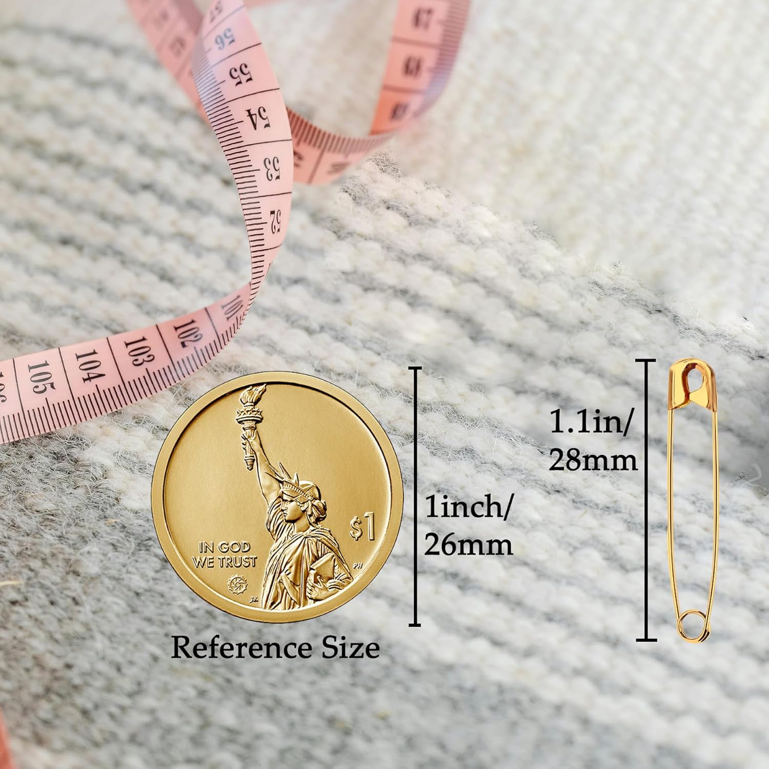 1000PCS Safety Pins, 1.1 inch Small Safety Pins, Rust-Resistant Nickel Plated Steel, Sharp Edge Safety Pin for Clothes, Sewing, 28mm Decorative Safety Pins Assorted (Gold)