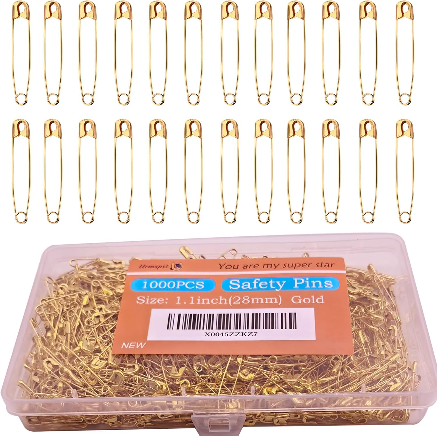 - π [Great Value Pack] Set of 1000pcs, 1.1in(28mm) small safety pins with a convenient storage box, Gold color safety pins to make your daily life more convenient.