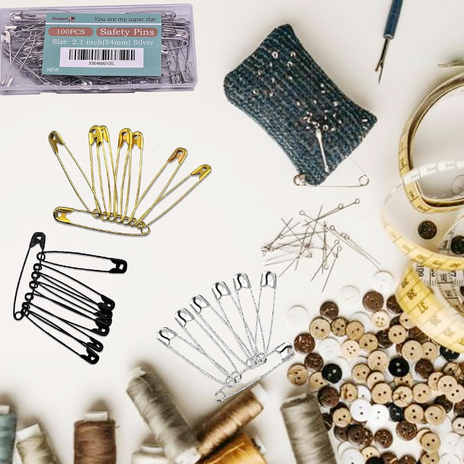 - π [Great Value Pack] Set of 100pcs, 2.1in small safety pins with a convenient storage box, Silver color safety pins to make your daily life more convenient.