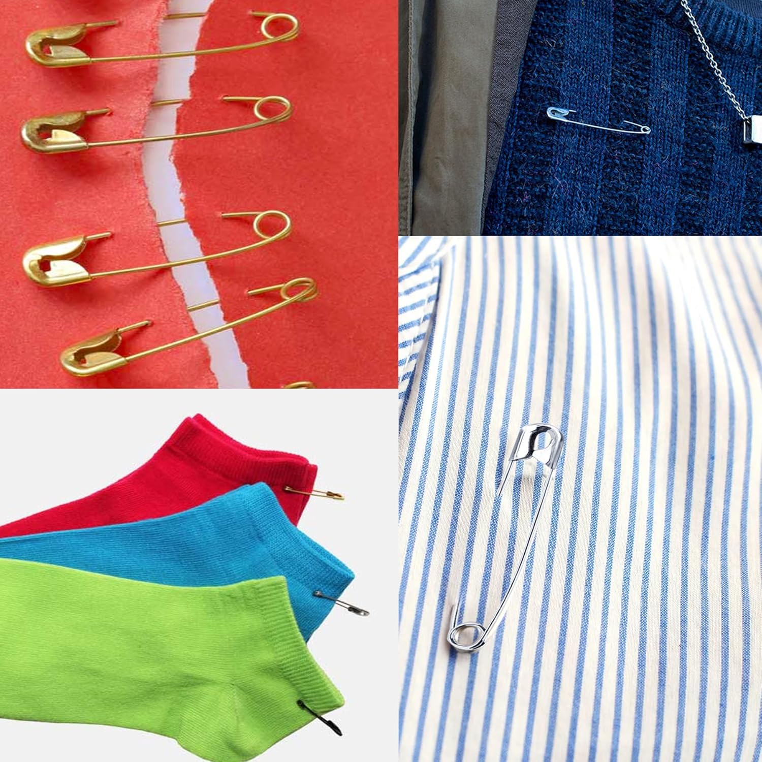 - π [Multi-Use] These safety pins are perfect for Everyday Use, universally and commonly used to fasten pieces of paper, fabric or clothing together and do not cause damage or large hole.