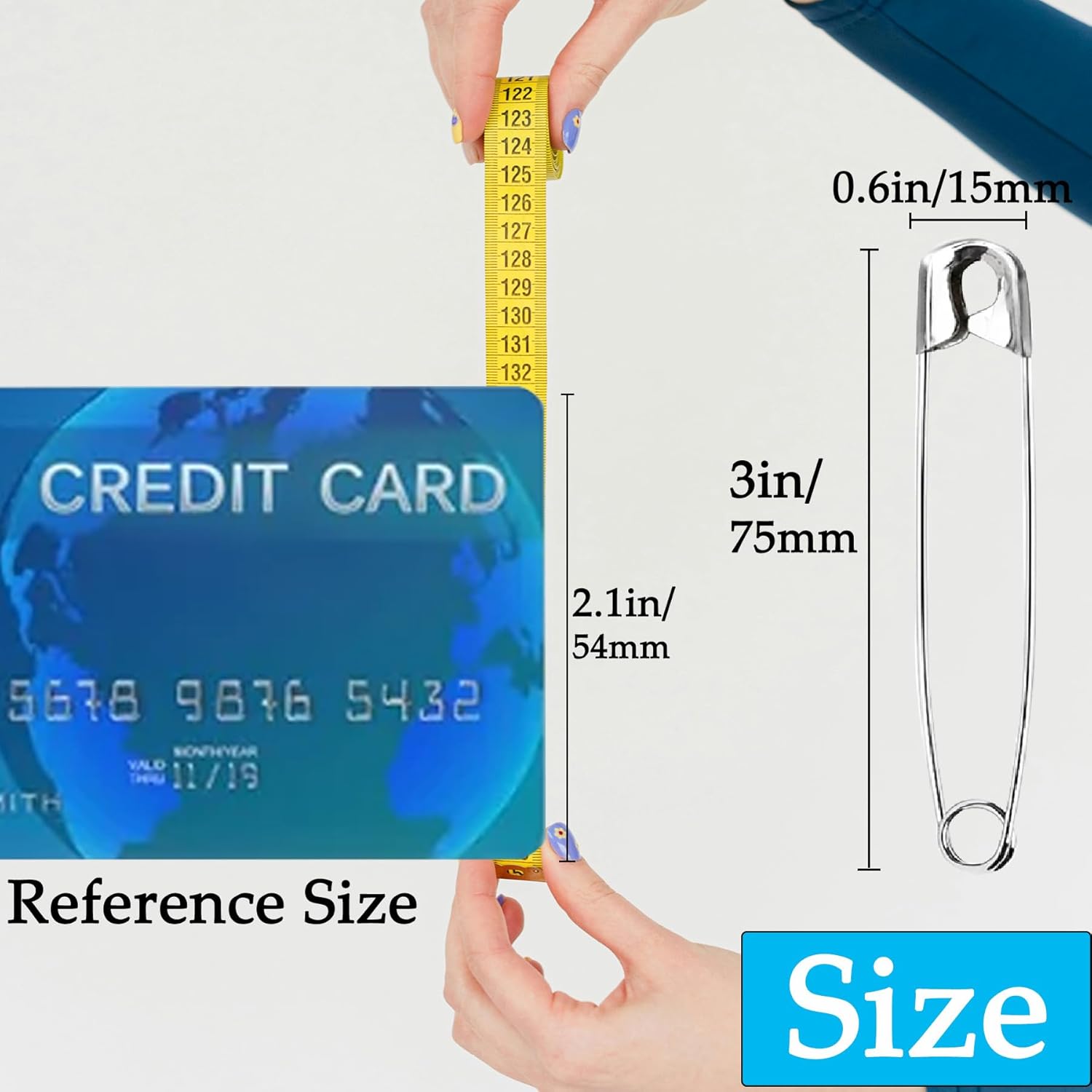 - π [Great Value Pack] Set of 60pcs, 3.0in(75mm) large safety pins with a convenient storage box, Silver color safety pins to make your daily life more convenient.