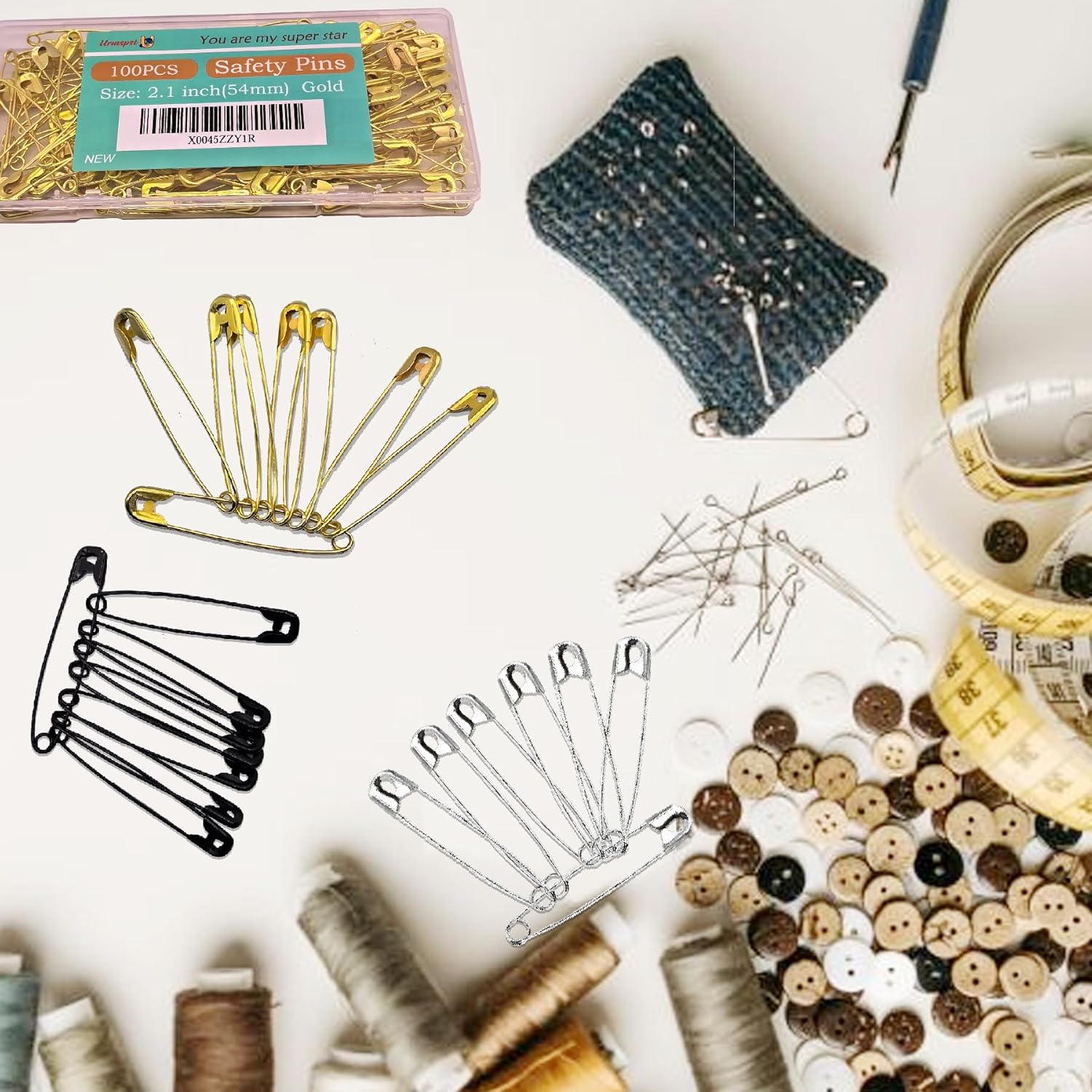 - π [Great Value Pack] Set of 100pcs, 2.1in small safety pins with a convenient storage box, Gold color safety pins to make your daily life more convenient.
