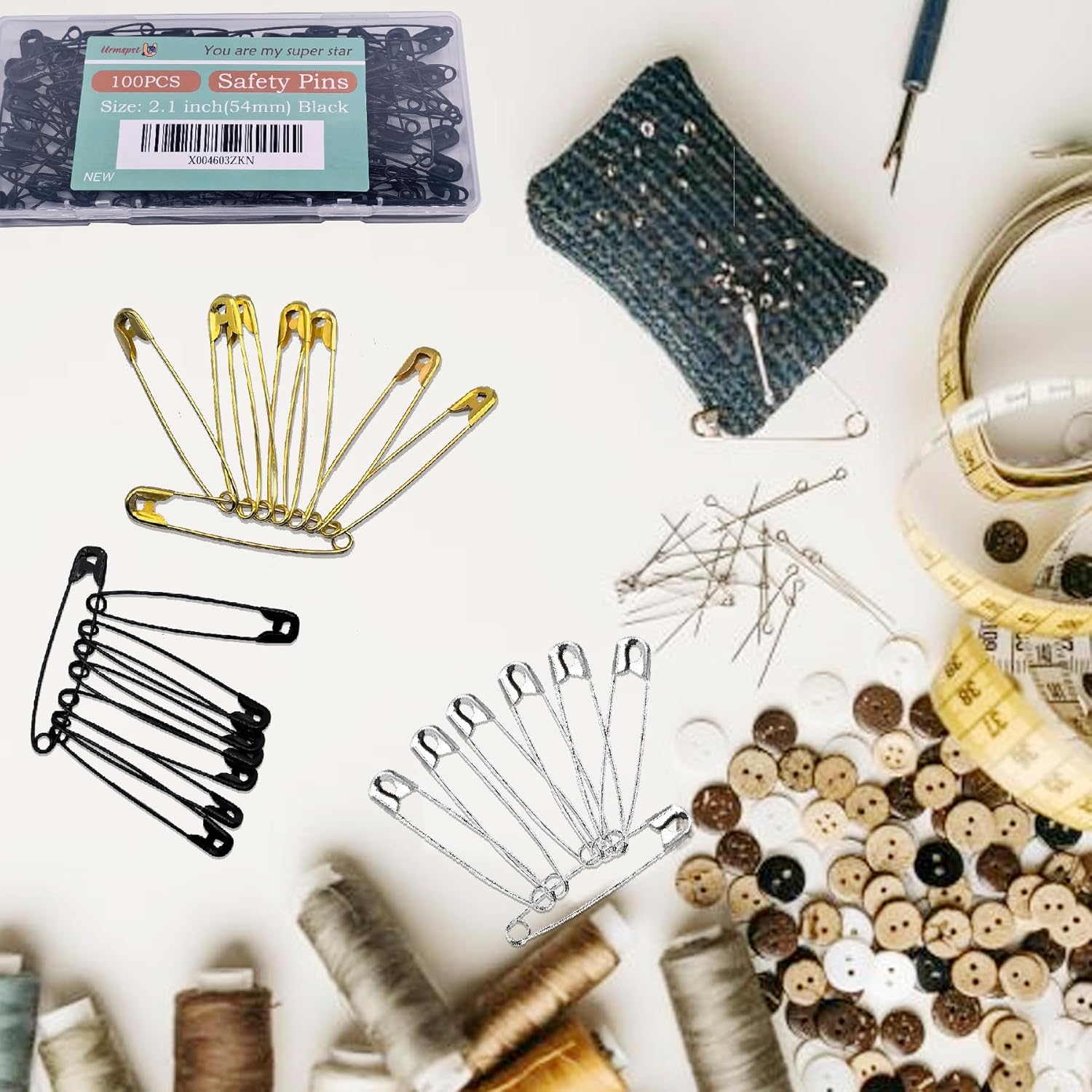 - π [Great Value Pack] Set of 100pcs, 2.1in small safety pins with a convenient storage box, Black color safety pins to make your daily life more convenient.