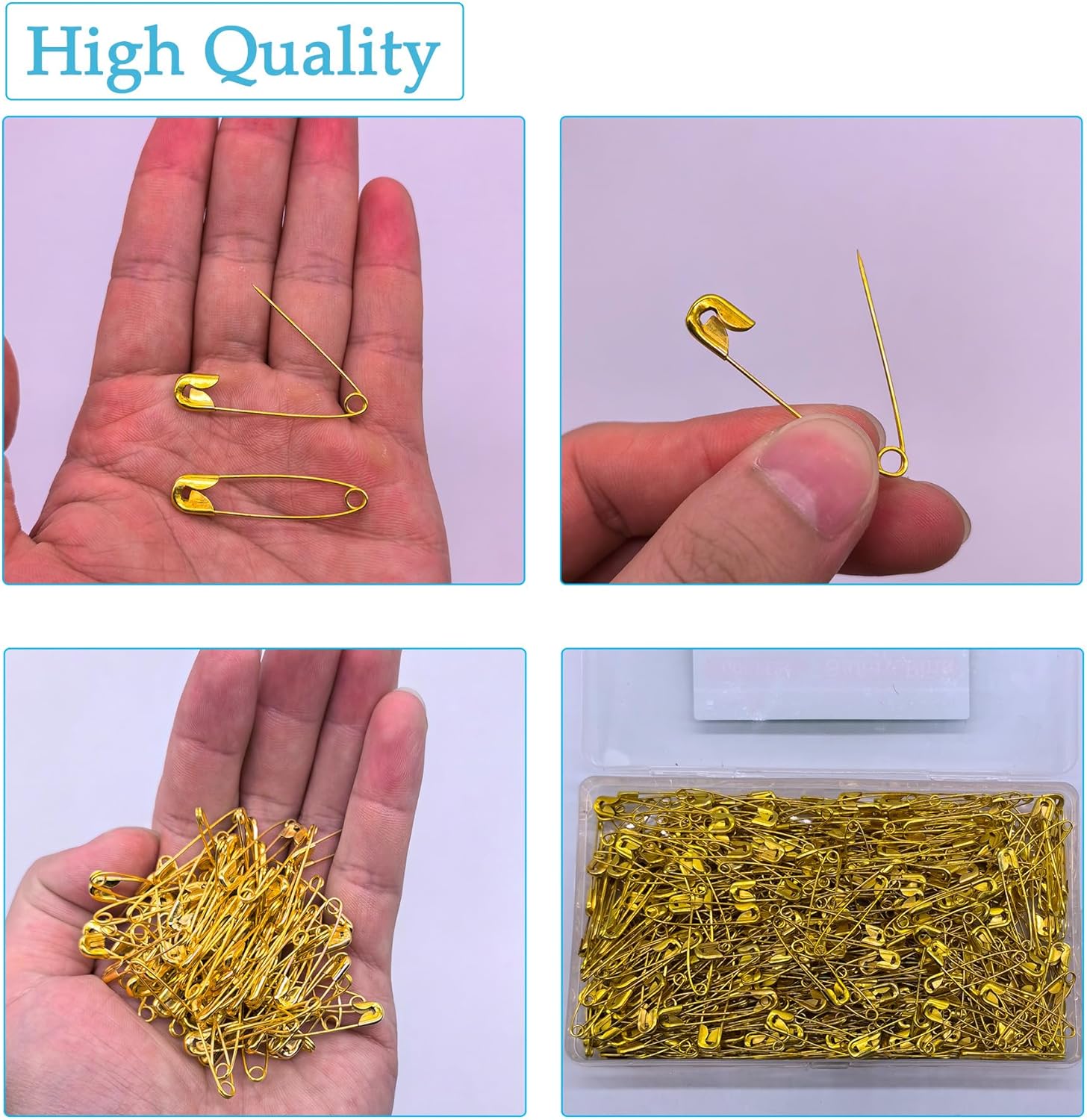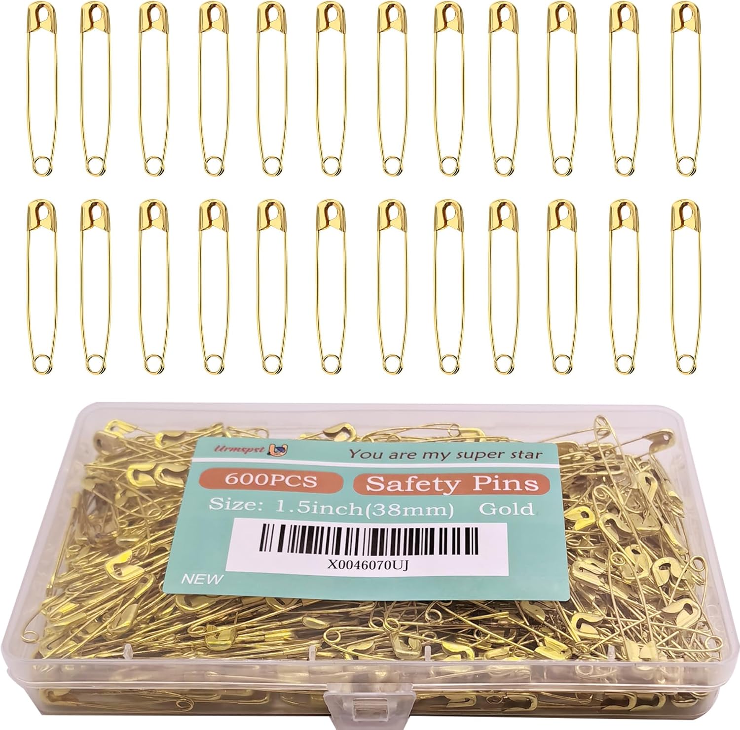 - π [Great Value Pack] Set of 600pcs, 1.5in(38mm) small safety pins with a convenient storage box, Gold color safety pins to make your daily life more convenient.