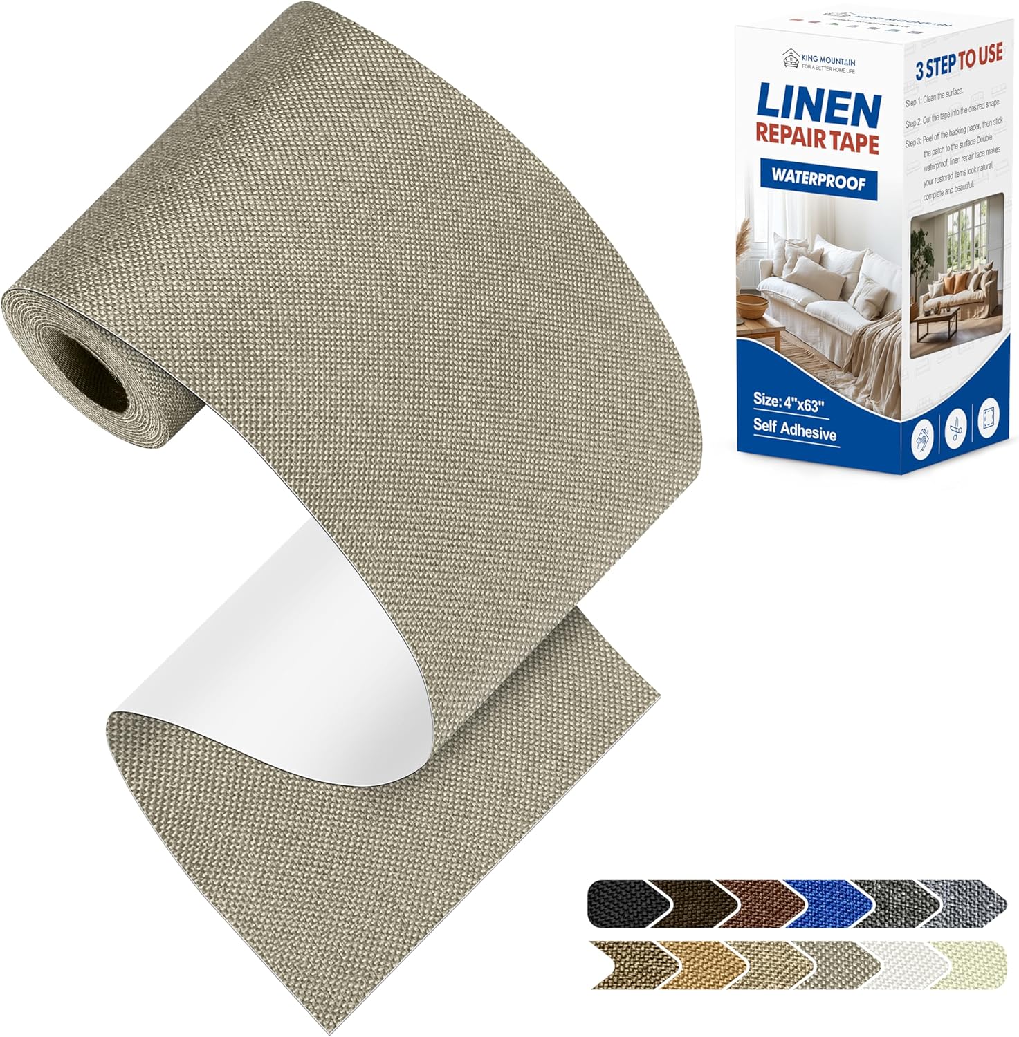 KING MOUNTAIN Linen Repair Patches, Self-Adhesive Linen Fabric Patches, 4 X 63 inch Extra Size, Multi Color, Can be Used for Linen Sofa Repair and Linen Clothes Repair(Khaki1.0