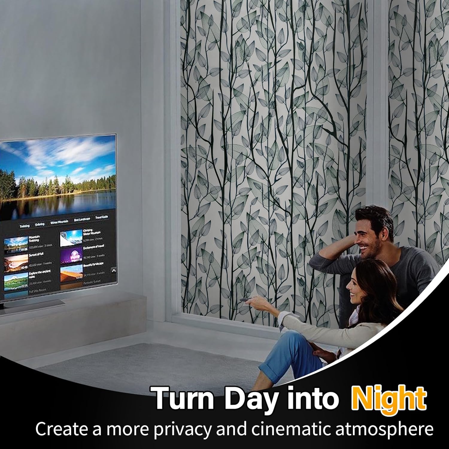 Leaf Pattern Window Tint with Installation Tools, Blackout Window Cover, Sun Blocking Window Tint for Home (Full Blackout Opaque, 17.7'' x 118.1'')