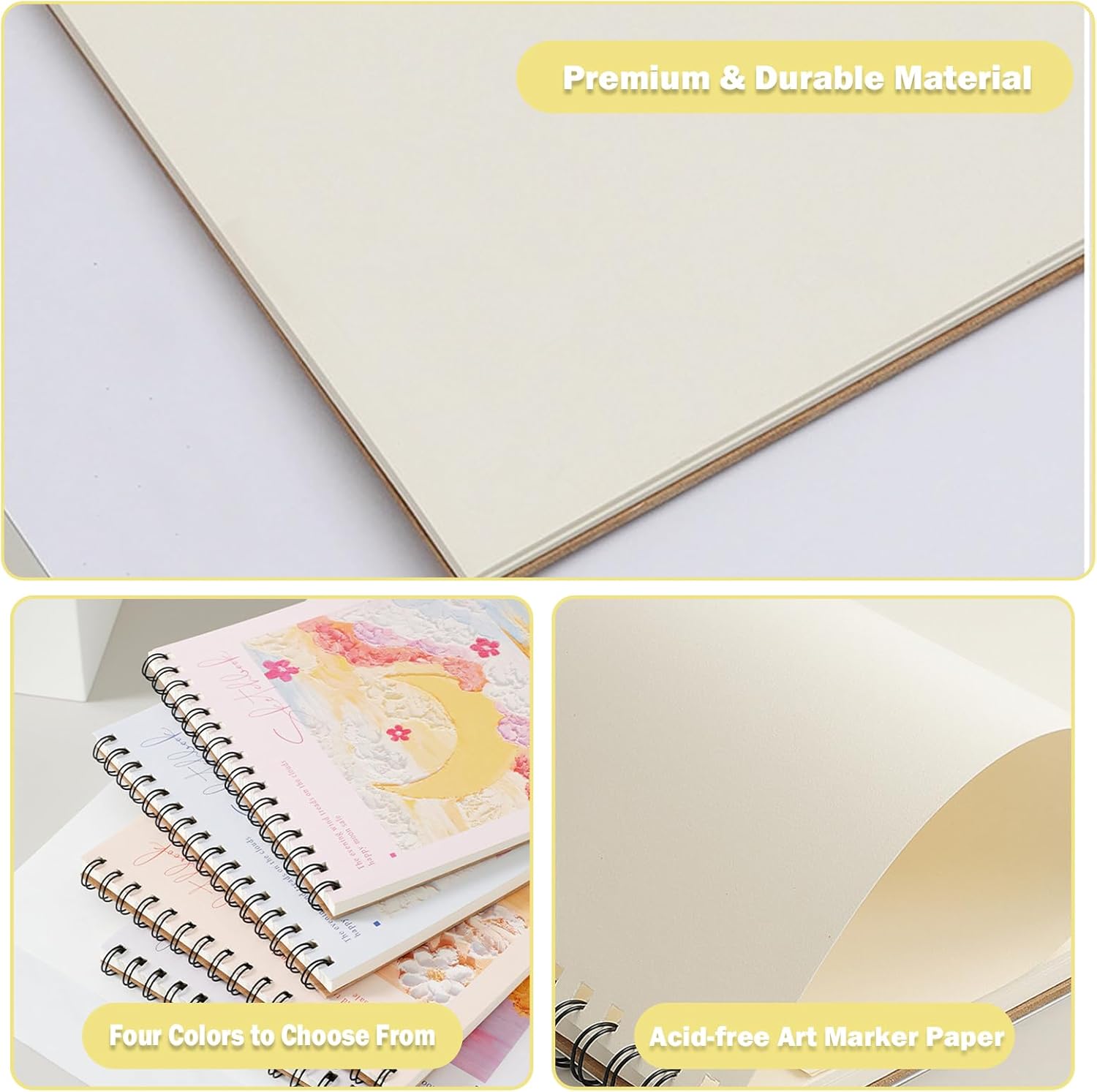 - Suitable for All Dry Media: There are four colors of covers to choose from pink sketchbook, pink notebook, blue, yellow and purple.Featuring premium, acid-free, natural white paper suitable for pencils, pens, crayons, charcoal, pastels, and sketching sticks. Please note it is not suitable for alcohol markers or watercolor pens
