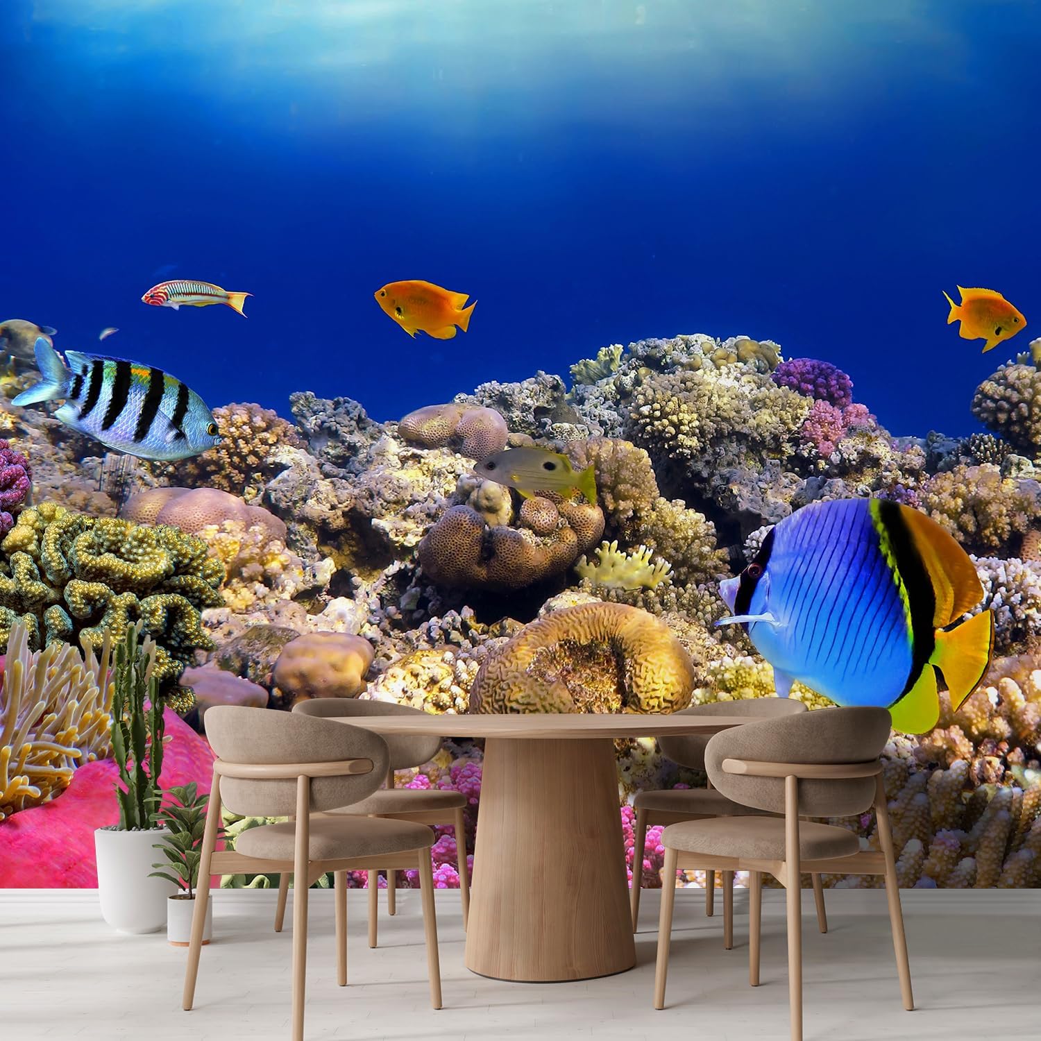 wall26 Removable Wall Sticker/Wall Mural Tropical Blue Fish Coral Reef Ocean Seascape Nature Wilderness Photography Nautical Landscape Decorative for Living Room, Bedroom, Office - 120x120 inches