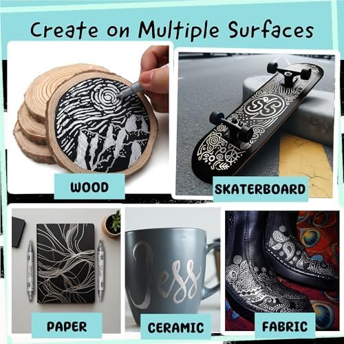 - Multiple Use - Get creative with DIY crafts using these silver pens metallic for canvas, silver fabric marker, porcelain, plastic, stones, polymer clay, wood, as acrylic paint pens for rocks painting, Silver paint marker for metal