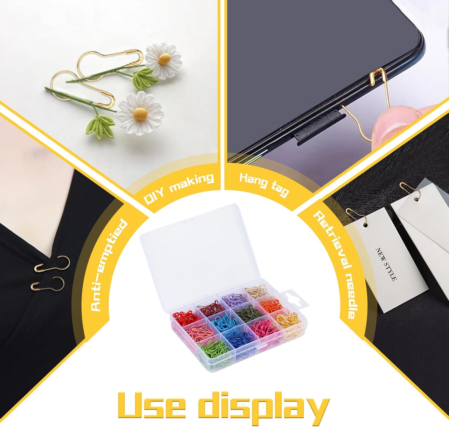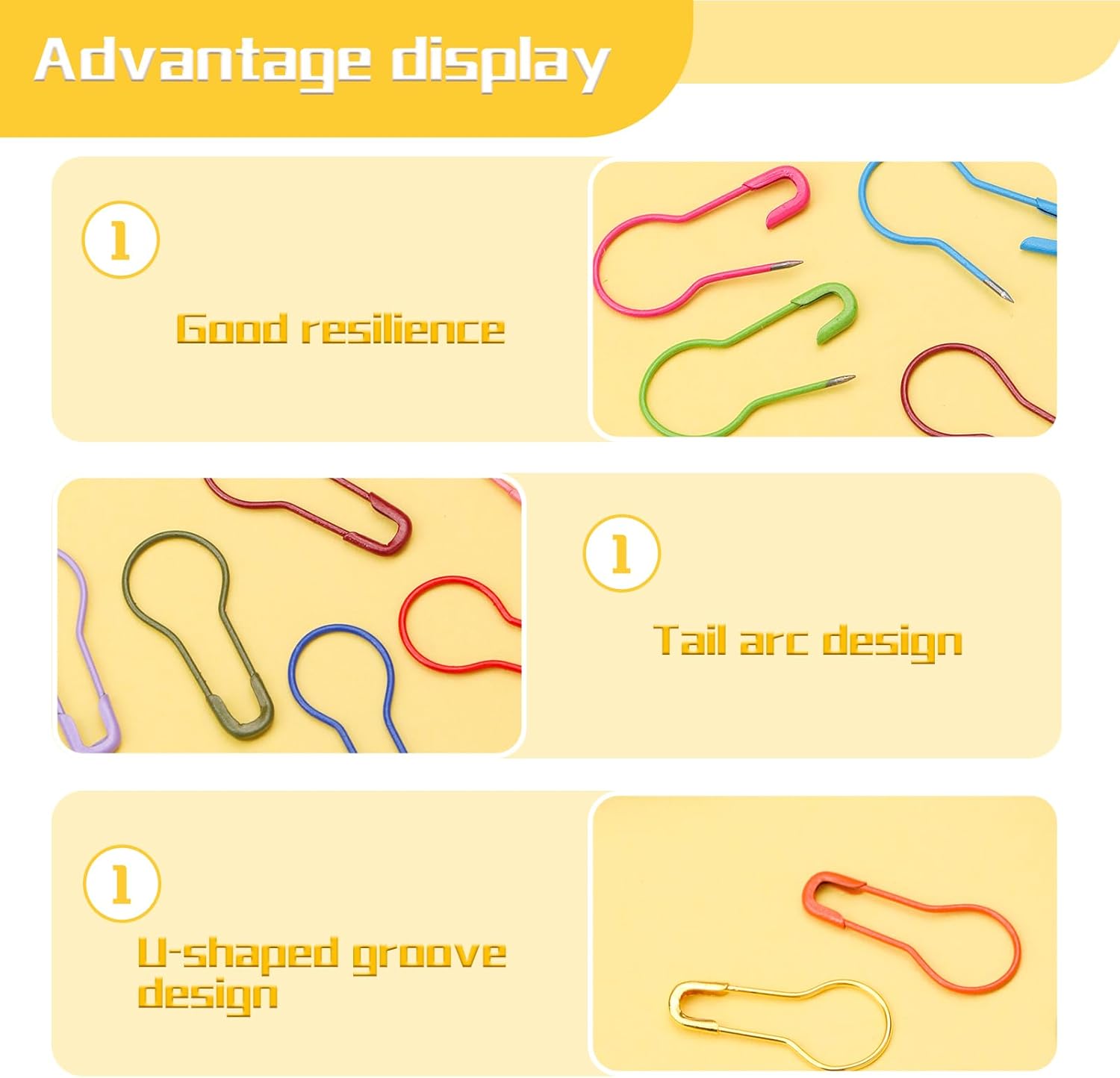 - PRACTICAL SAFETY PINS: These metal small items could be used as both stitch markers and safety pins. They work great for marking the end or start of each row, marking the position that needs to change crocheting method, locking the last circle when you finish a day' work to prevent the crocheted item from being pulled off and to lock several items together and keep fabric or paper in order