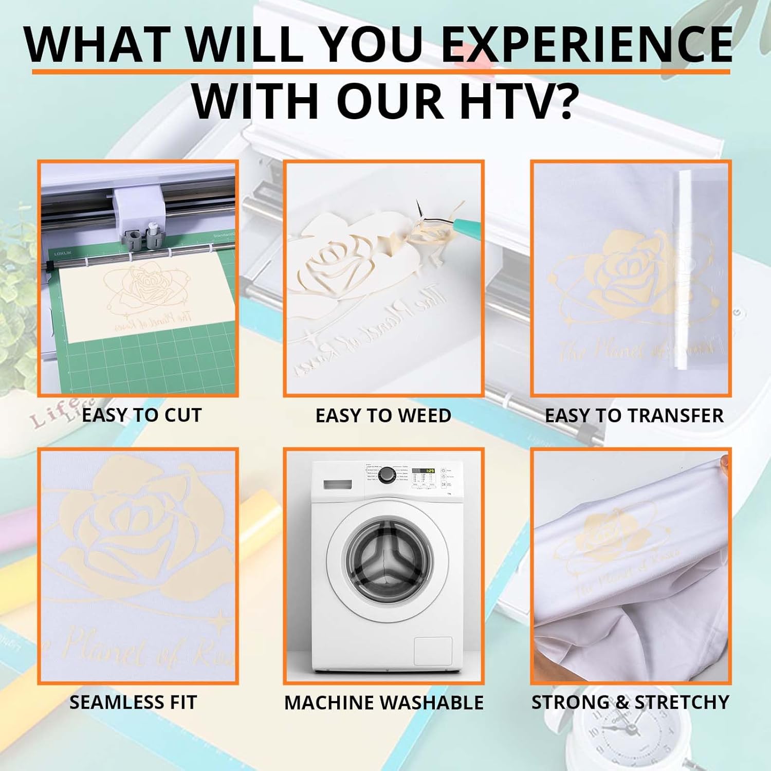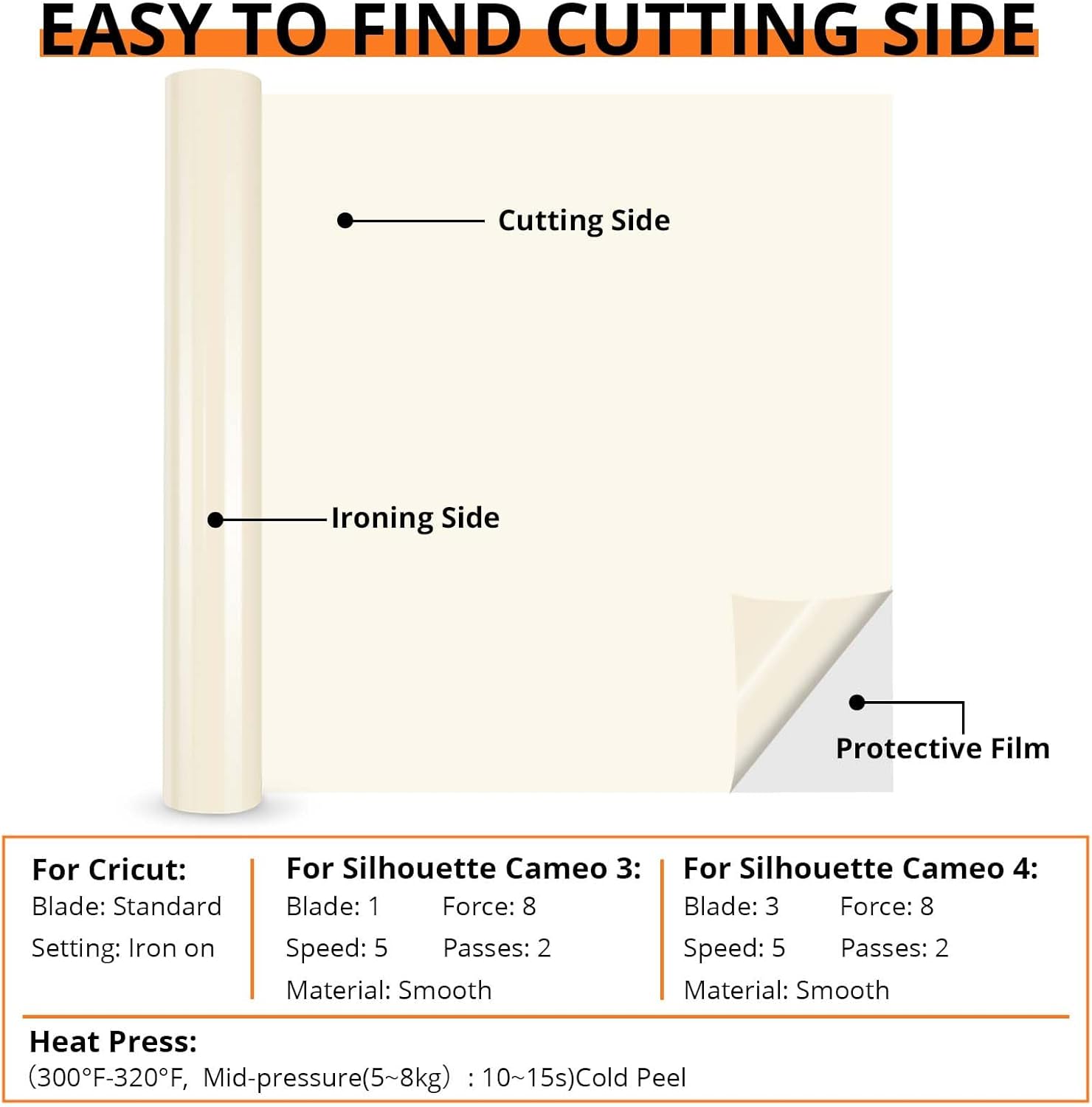 - 【EASY TO CUT WEED TRANSFER】Our premium quality heat transfer vinyl will save time which you may waste on each image or letter, because you can cut and weed easily through the designs just right. The iron on vinyl is sensitive to temperature and pressure, which can be heat transferred to any t-shirt easily. Before cutting, make sure the blade is clean and sharp, so that your design can be cut well and weeding can be done better
