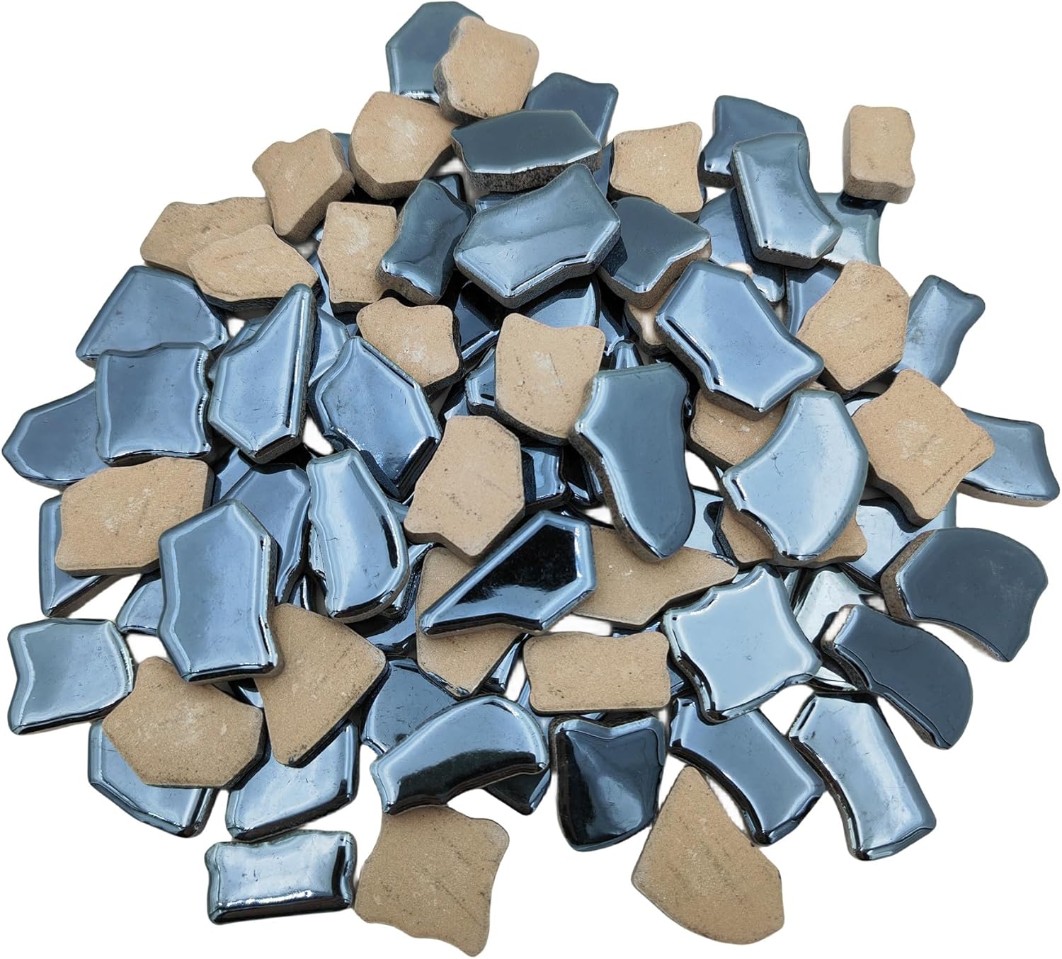 0.78"-1.57" Irregular Ceramics Mosaic Tiles,1.1LB Mosaic Pieces Stones for Home Decoration DIY Craft Plates Flowerpots Vases Cups Mosaic Making Supplies (Iridescent Black 1)