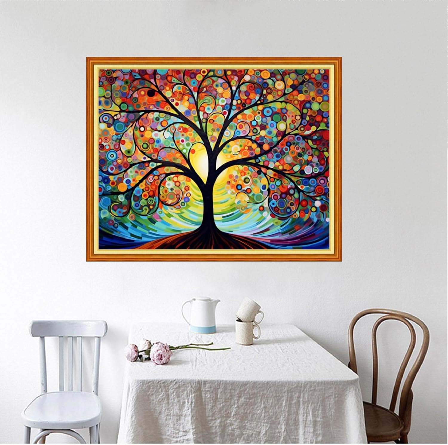 Foxhool Beginners Cross Stitch Kits Stamped Full Range of Embroidery Kits for Adults DIY Cross Stitches kit Embroidery Patterns for Needlepoint kit-Starry Sky Tree 16x20 inch