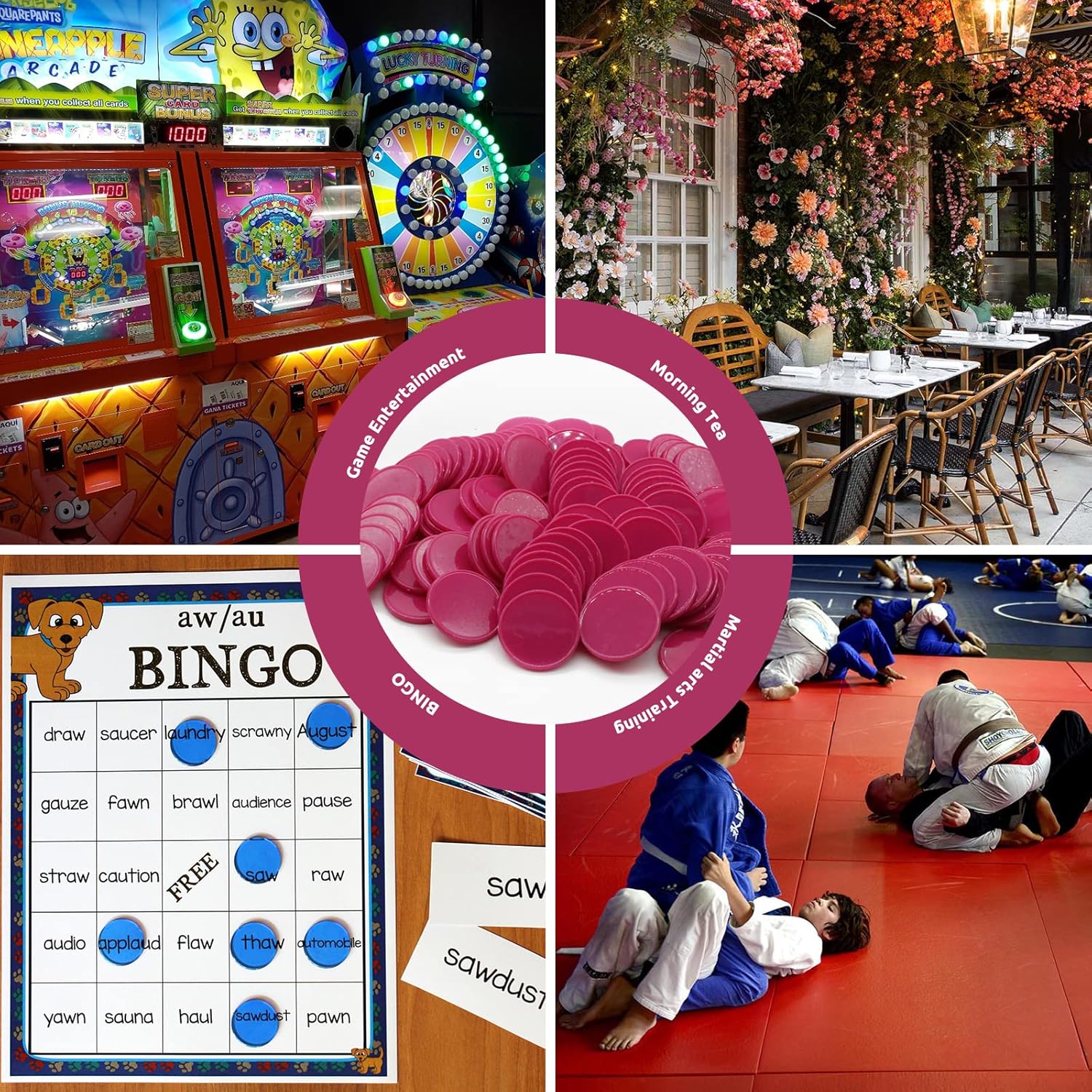 Set of 100 Opaque Plastic Learning Counters Mini Poker Chips Game Tokens with Storage Box (MediumVioletRed, 1.58 Inch)