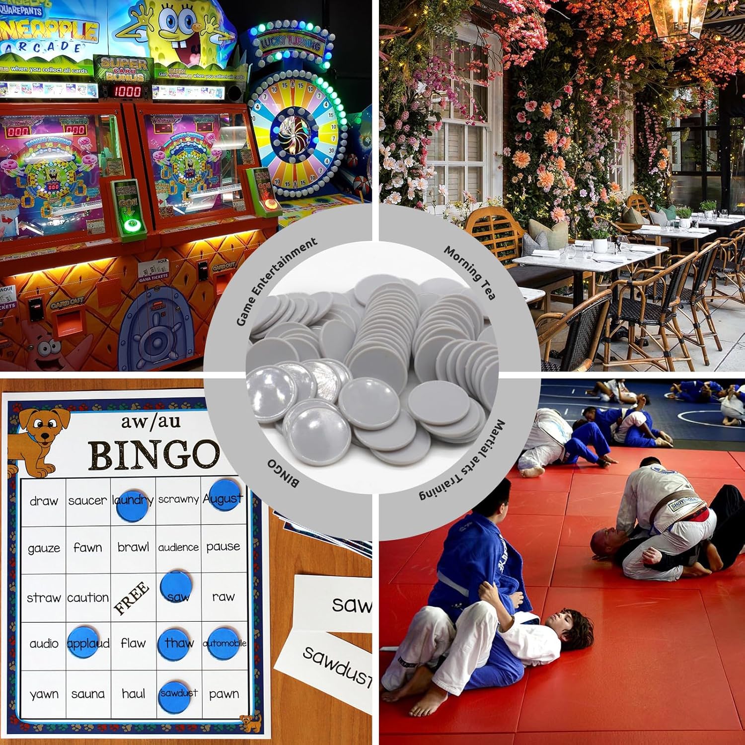 Set of 100 Opaque Plastic Learning Counters Mini Poker Chips Game Tokens with Storage Box (LightGray, 1.58 Inch)