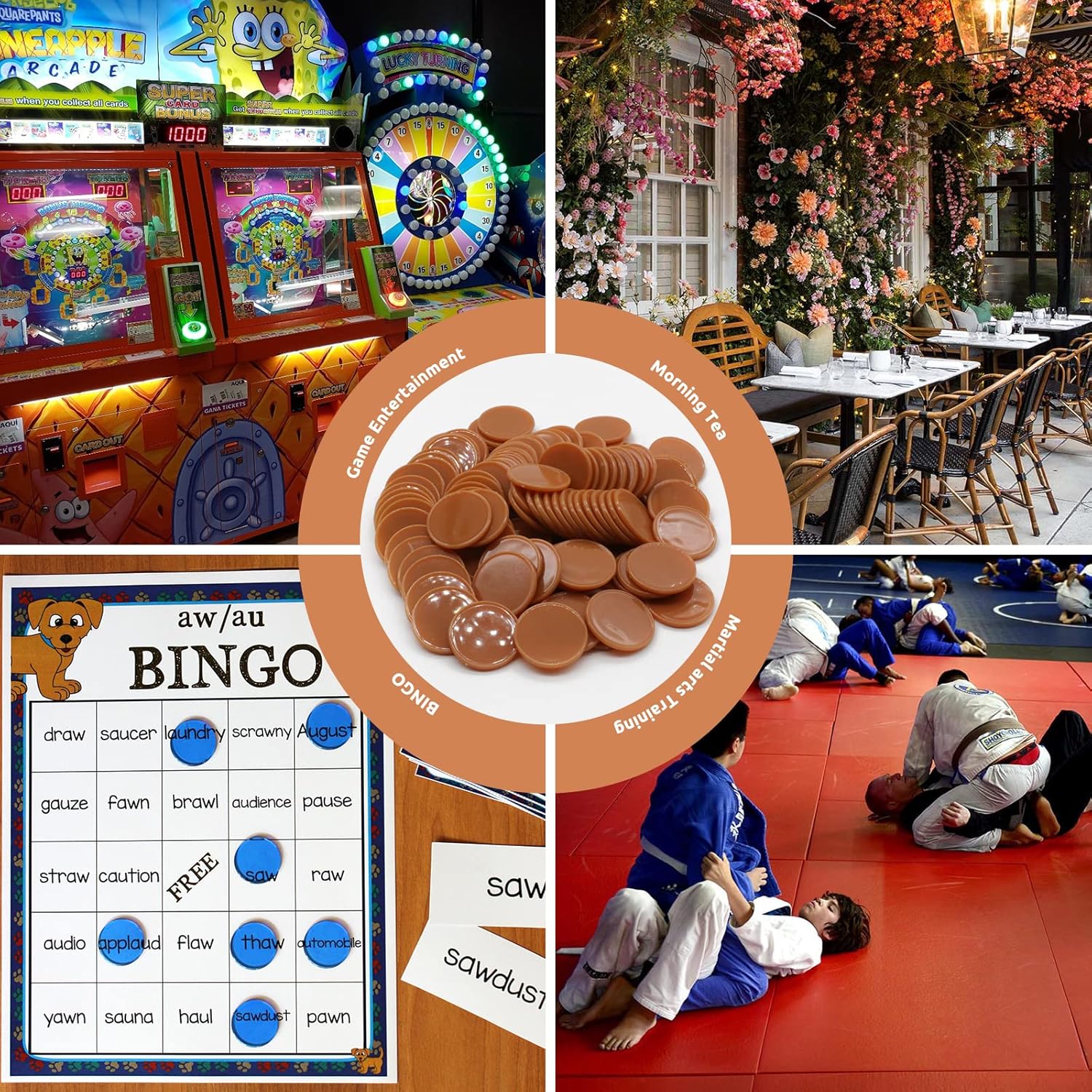 Set of 100 Opaque Plastic Learning Counters Mini Poker Chips Game Tokens with Storage Box (Chocolate, 1.58 Inch)
