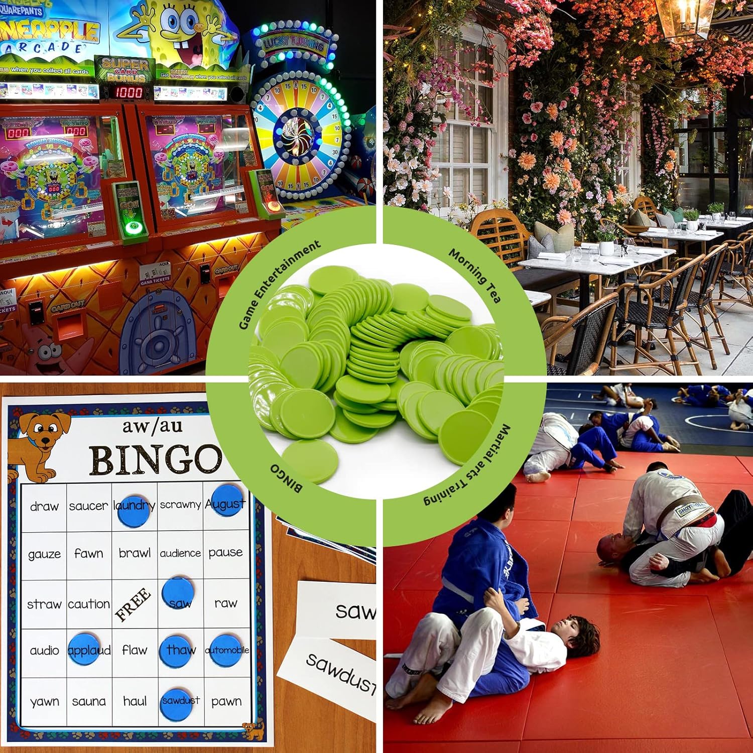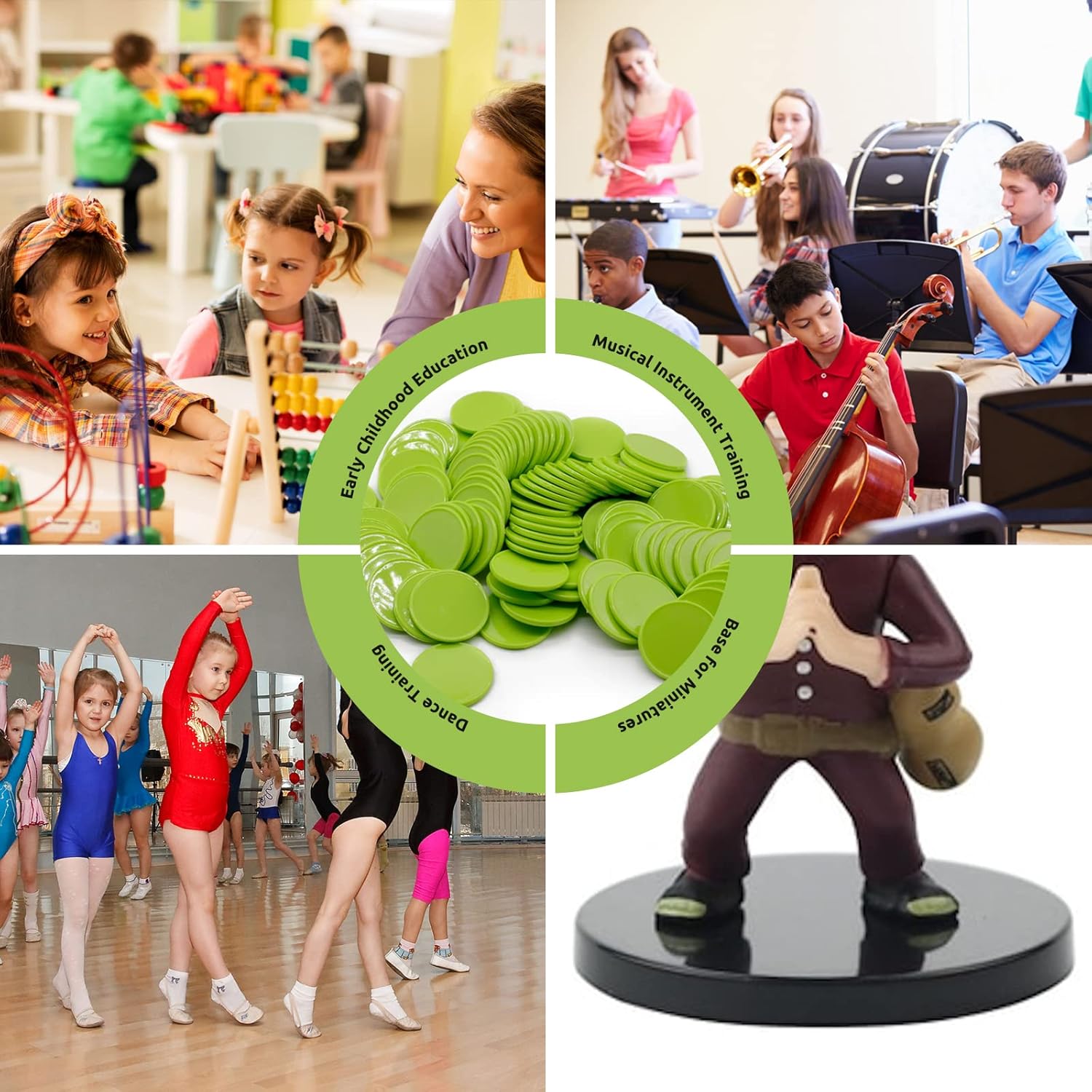 Set of 100 Opaque Plastic Learning Counters Mini Poker Chips Game Tokens with Storage Box (LawnGreen, 1.26 Inch)
