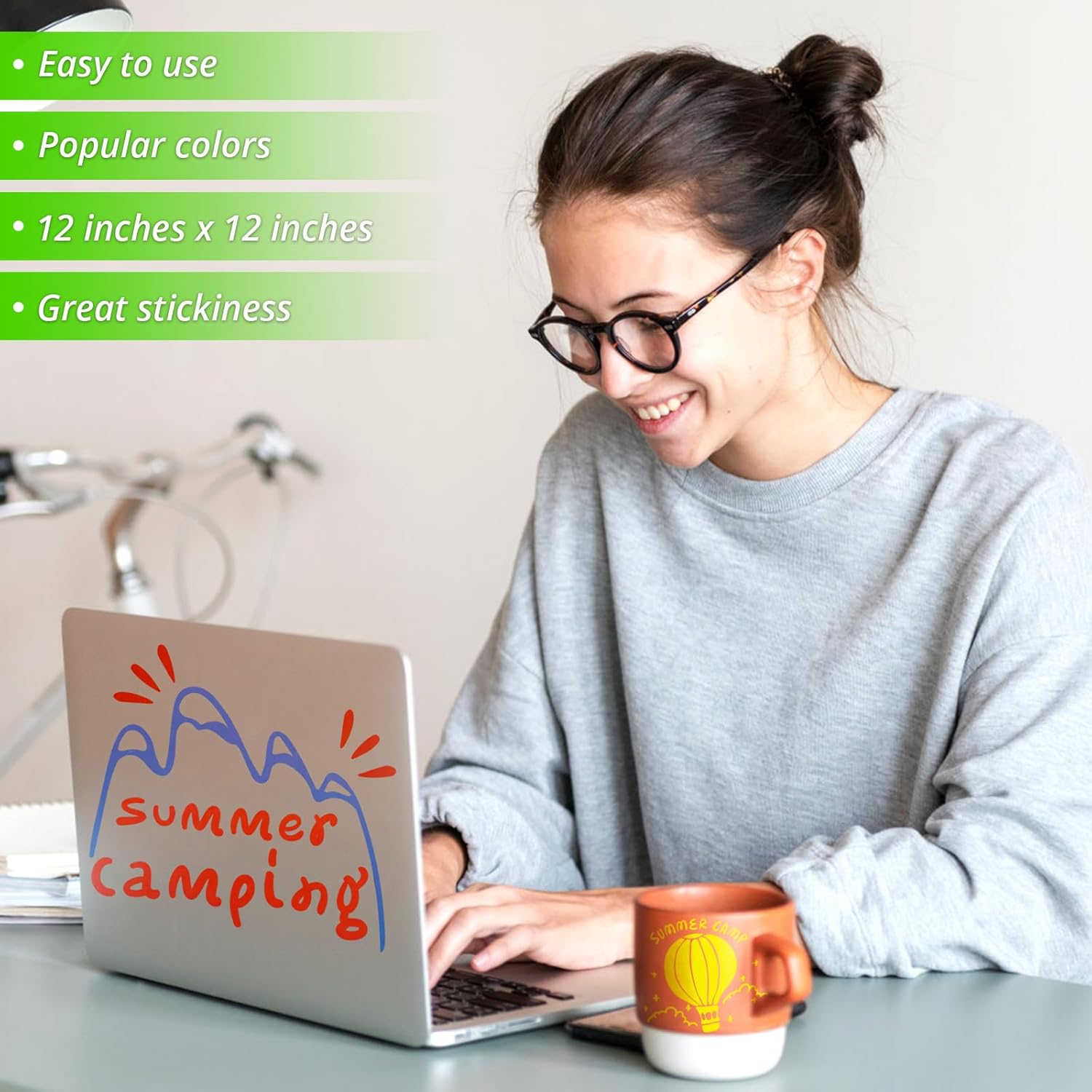 - PERMANENT VINYL SHEETS - In this permanent vinyl starter pack, you get 58 sheets of permanent vinyl sheets (glossy/matte black vinyl, glossy/matte white vinyl and other beautiful colors)and 10 Transfer Tape Sheets! The 12" X 12" permanent adhesive vinyl sheet is perfect for beginners and professionals. Notice: NOT HEAT TRANSFER VINYL.